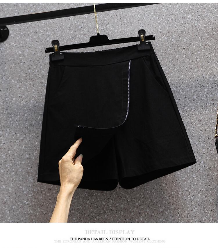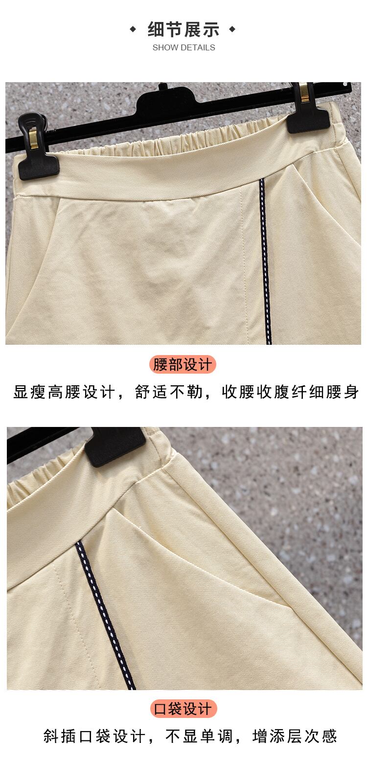 大サイズの婦人服 2023 夏の新しいファットシスター弾性ウエスト気質カジュアル弾性無地ワイドレッグパンツ エラスティック 伸縮 大きめサイズ サマー 夏物 ソリッドカラー 8884154641990537