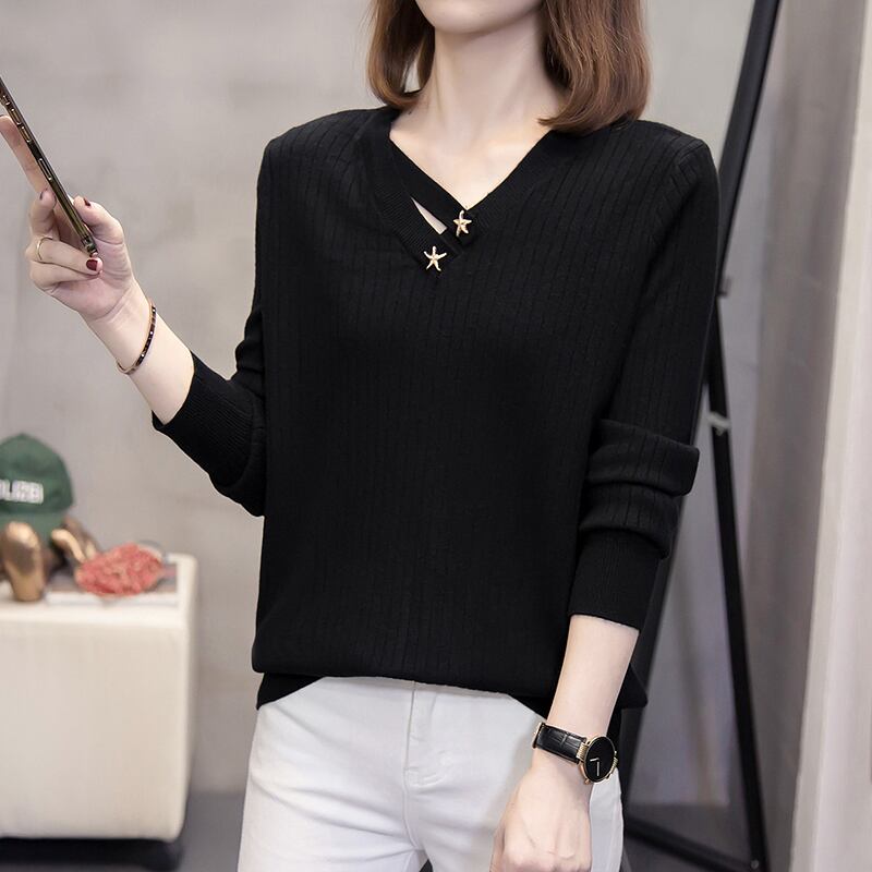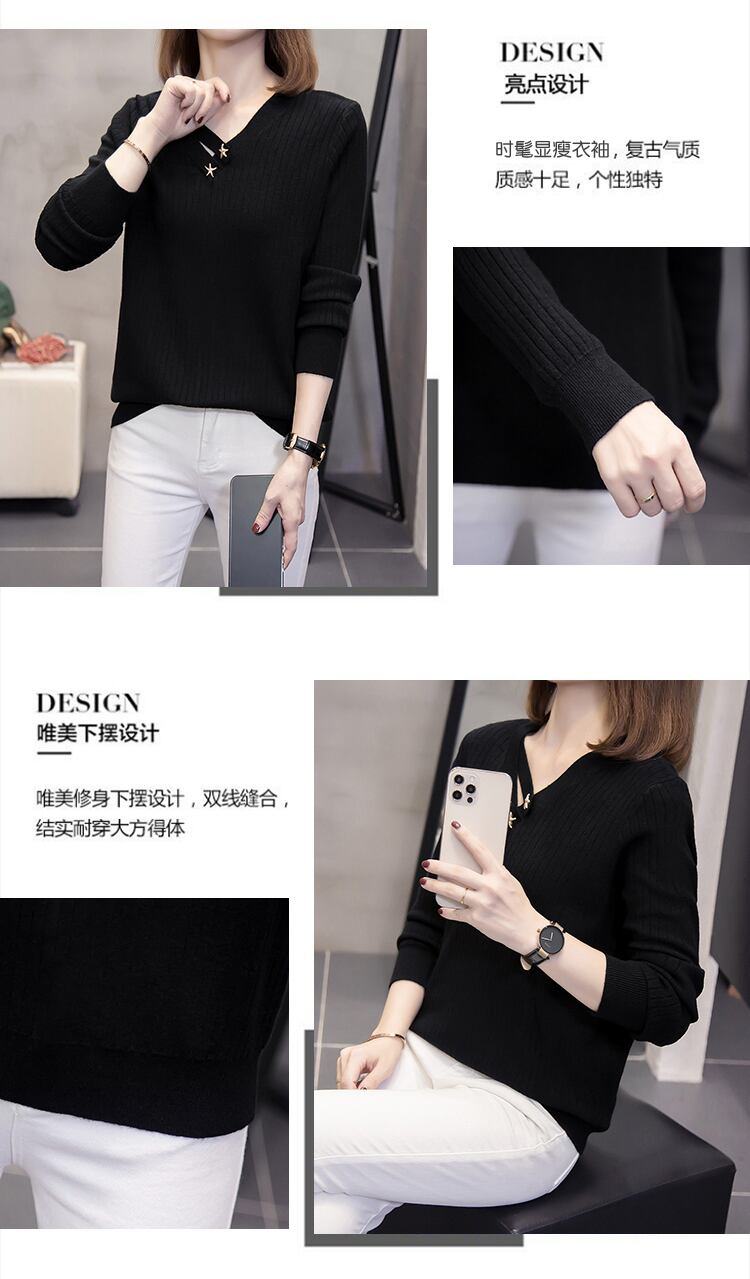 大きいサイズの婦人服 2023 トレンディな女性の春の新しいファット シスター eign スタイル V ネック ボトムス バージョン緩いオールマッチ セーター潮 大きめサイズ スプリング 春物 Vネック 888419149989041
