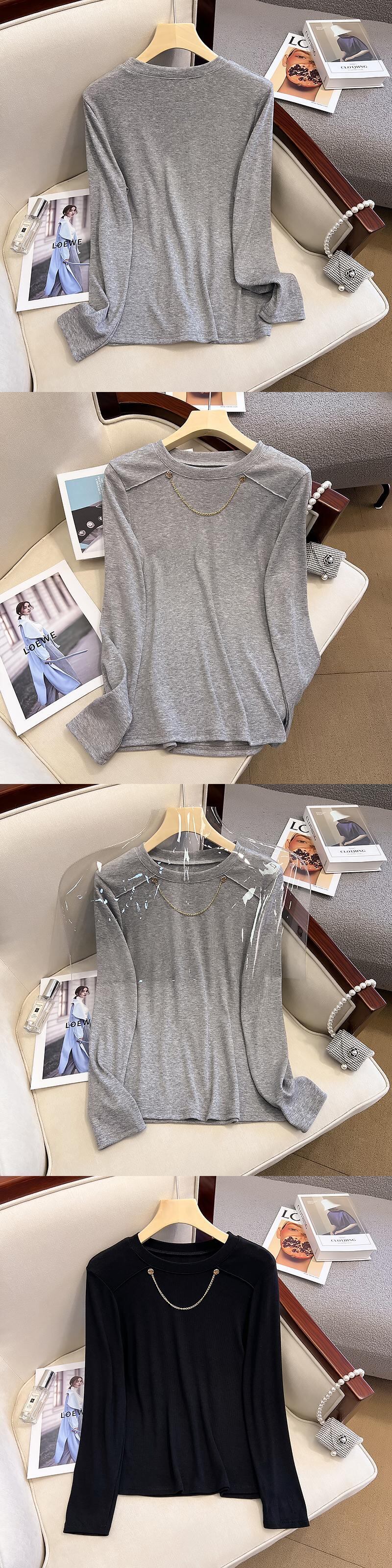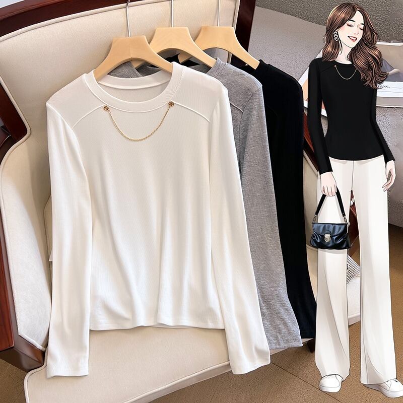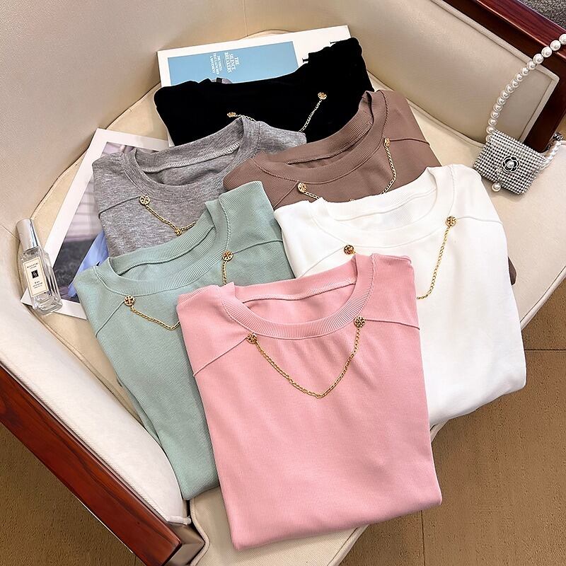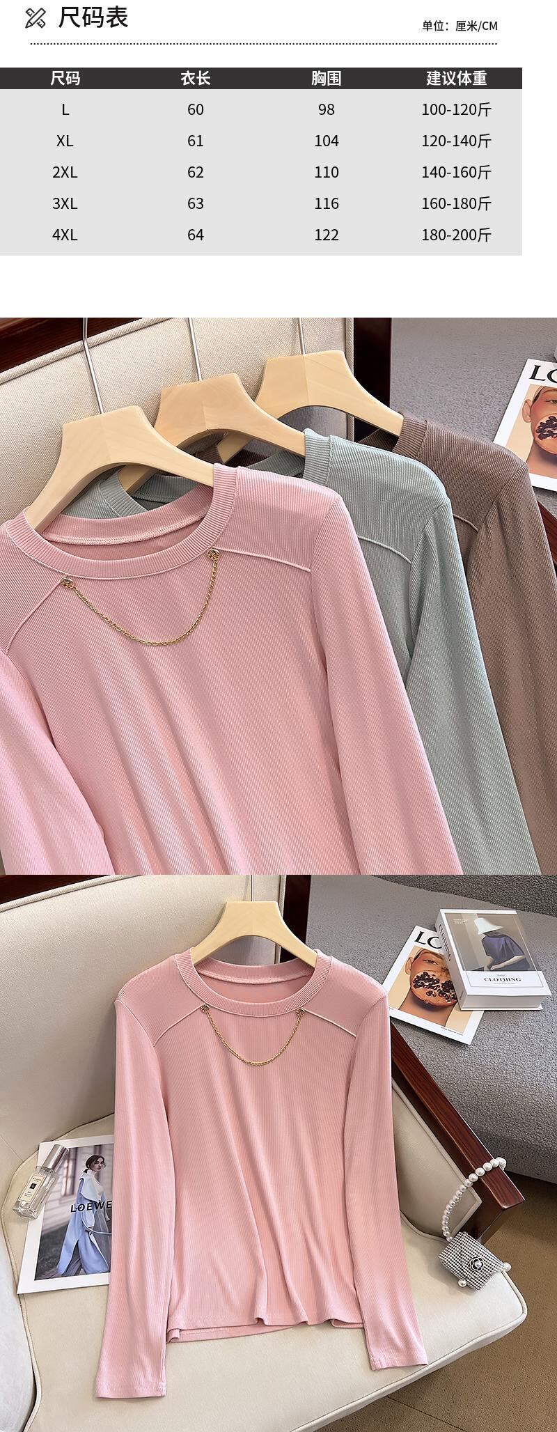 プラスサイズの婦人服 2023 トレンディな女性の春の新しいファットシスターデザインのカジュアルなスポーツスタイルのオールマッチの薄い底入れ Tシャツ 大きめサイズ スプリング 春物 8884182039278615