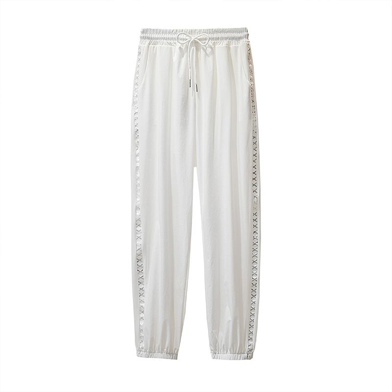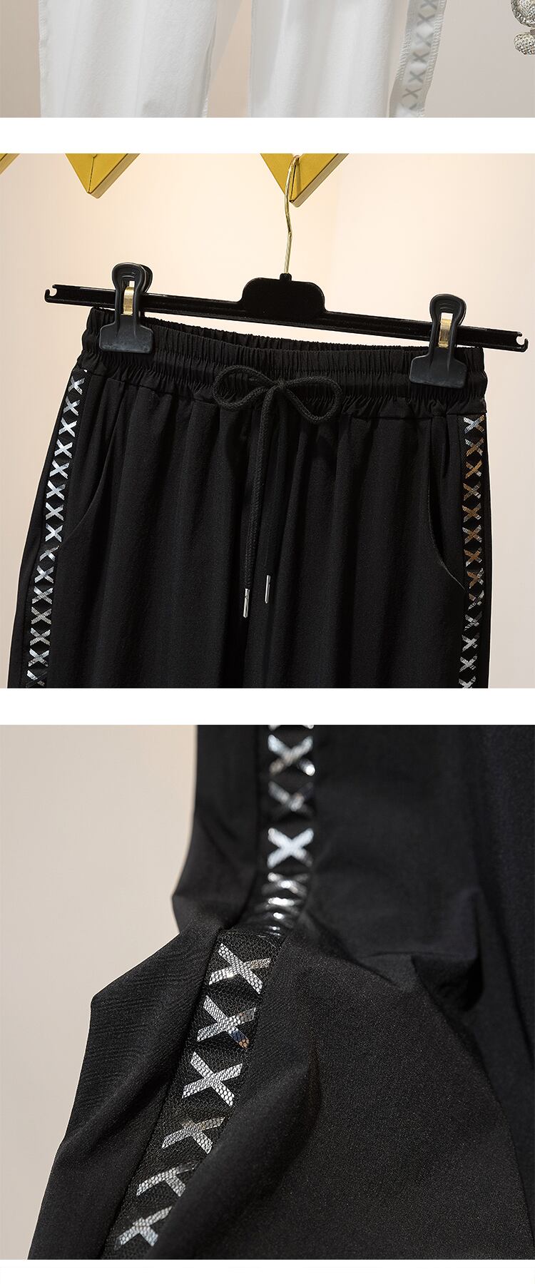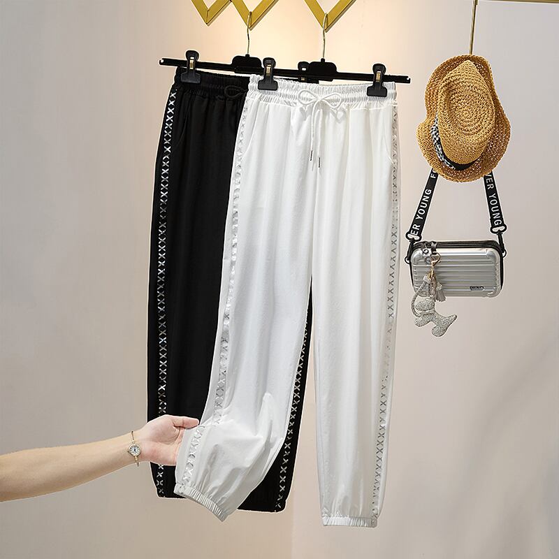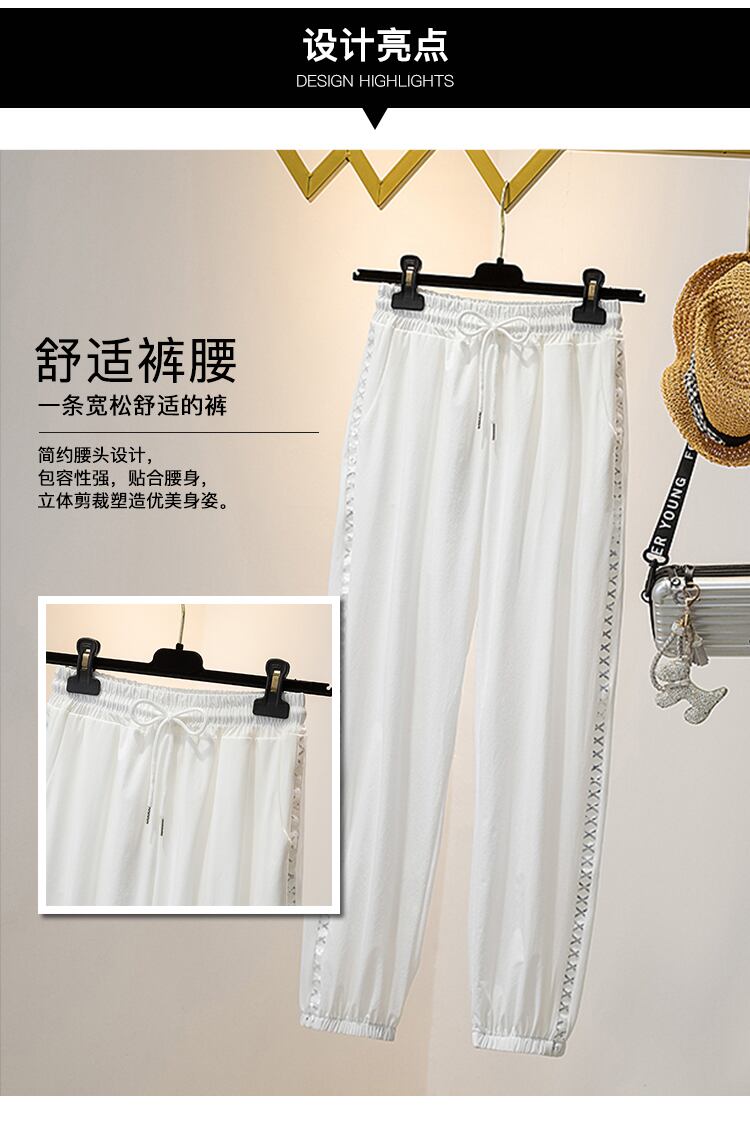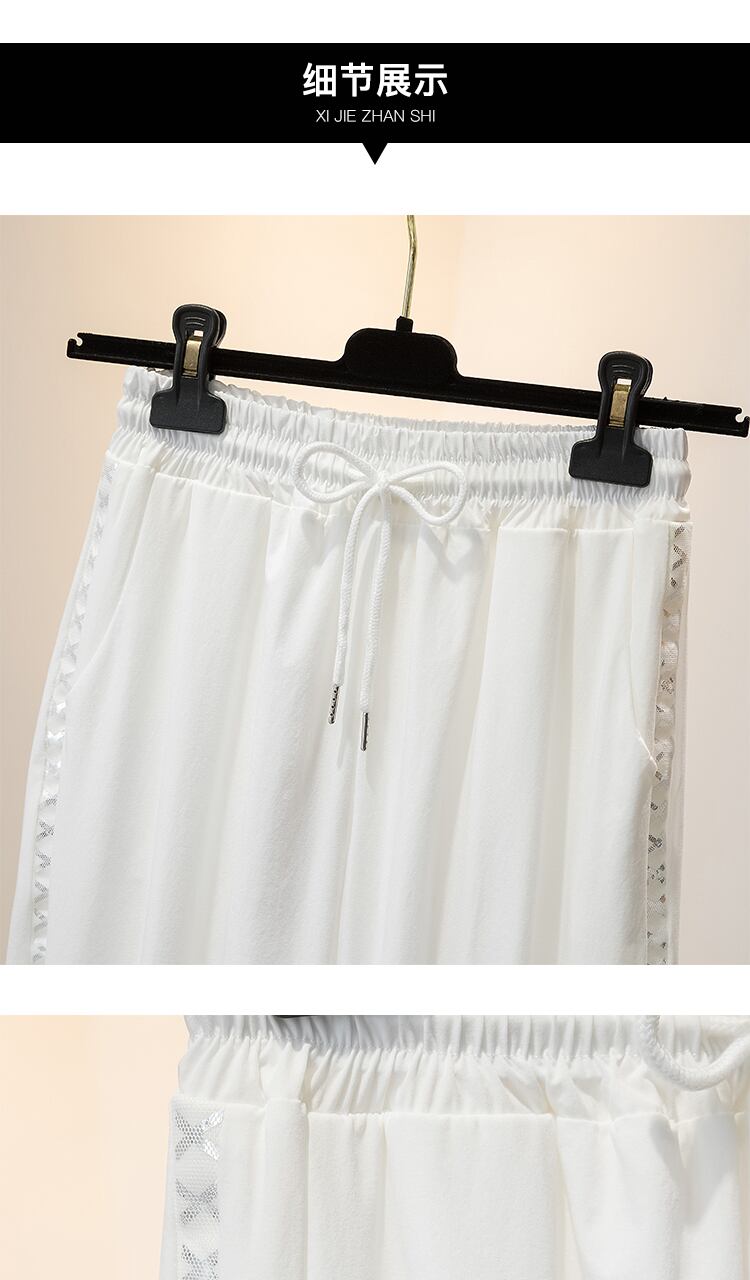 大きいサイズの婦人服2023年春服ファットシスターズの新しいハイウエスト伸縮性速乾パンツルーズで薄いオールマッチカジュアルパンツ エラスティック 大きめサイズ スプリング 春物 8884120179085066