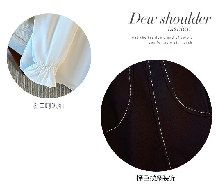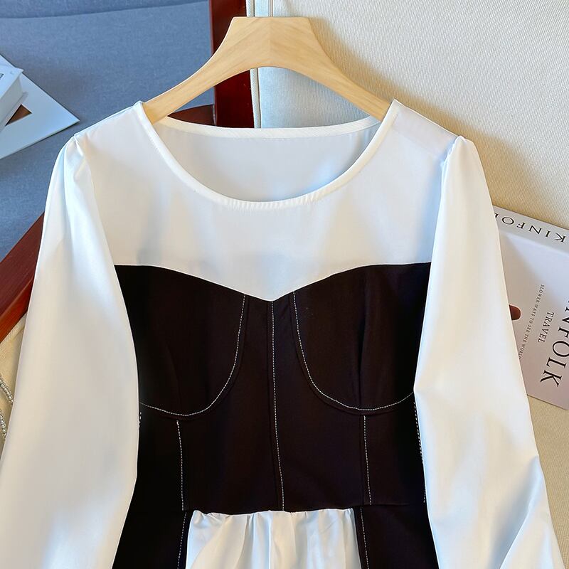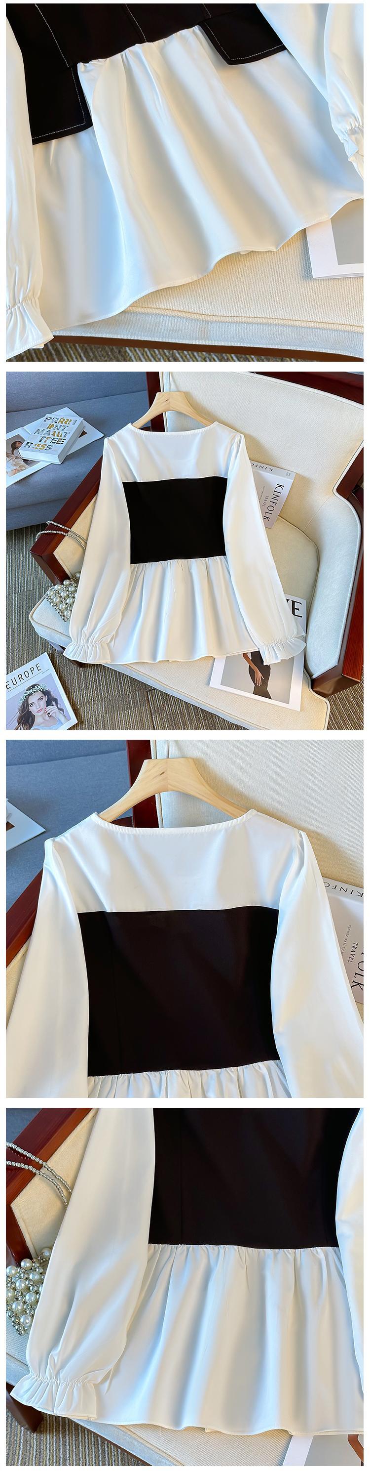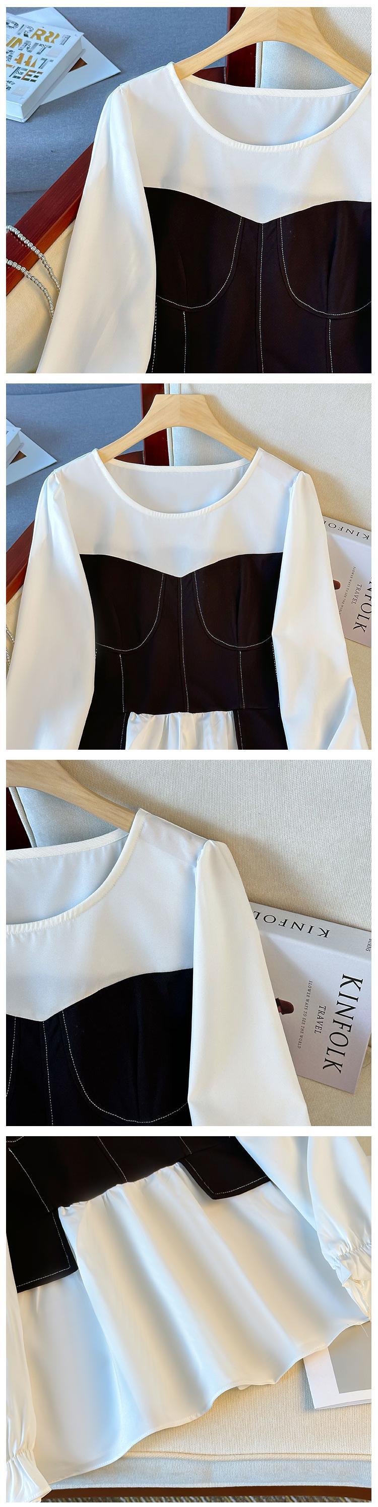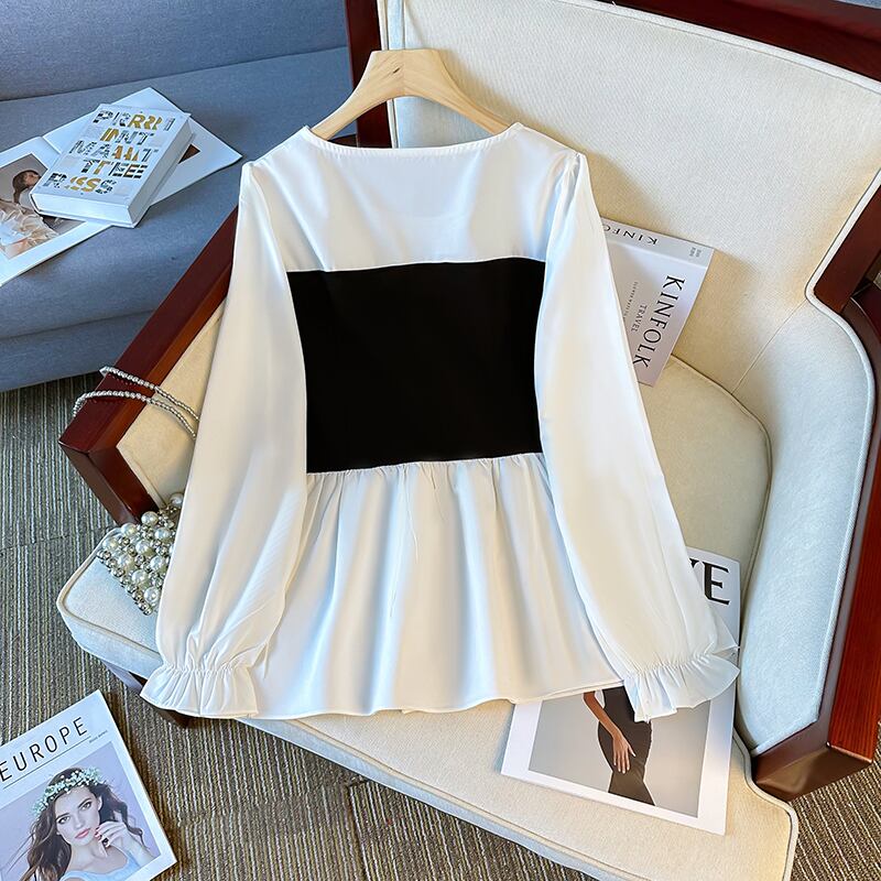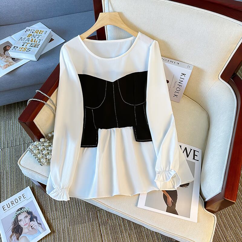大きいサイズの婦人服 2023 春服ファットシスターズの新しいフレンチスタイルオールマッチコントラストカラースプライシング薄いフェイクツーピースシャツ女性 大きめサイズ スプリング 春物 8884148545383034