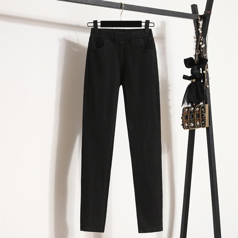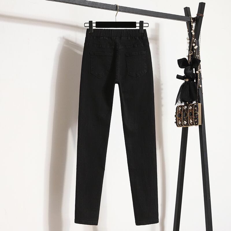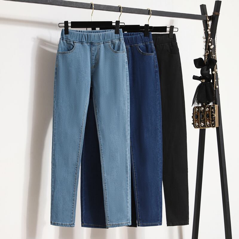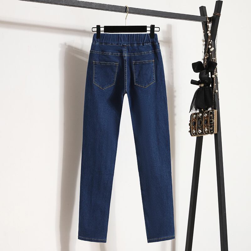 プラスサイズの婦人服 2023 春の新スタイル脂肪姉妹弾性ウエスト弾性ウエストハイウエスト弾性薄型ファッションジーンズ ハイウェスト エラスティック 伸縮 大きめサイズ スプリング 春物 8884184558642737