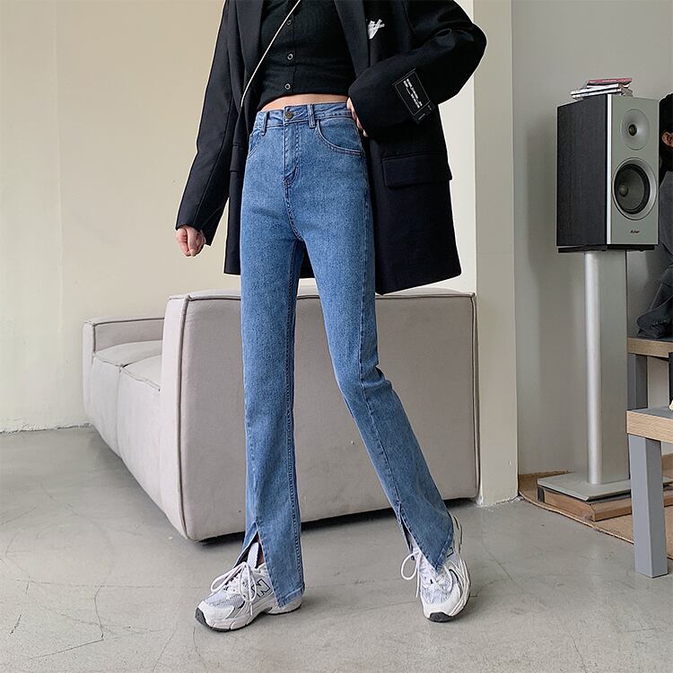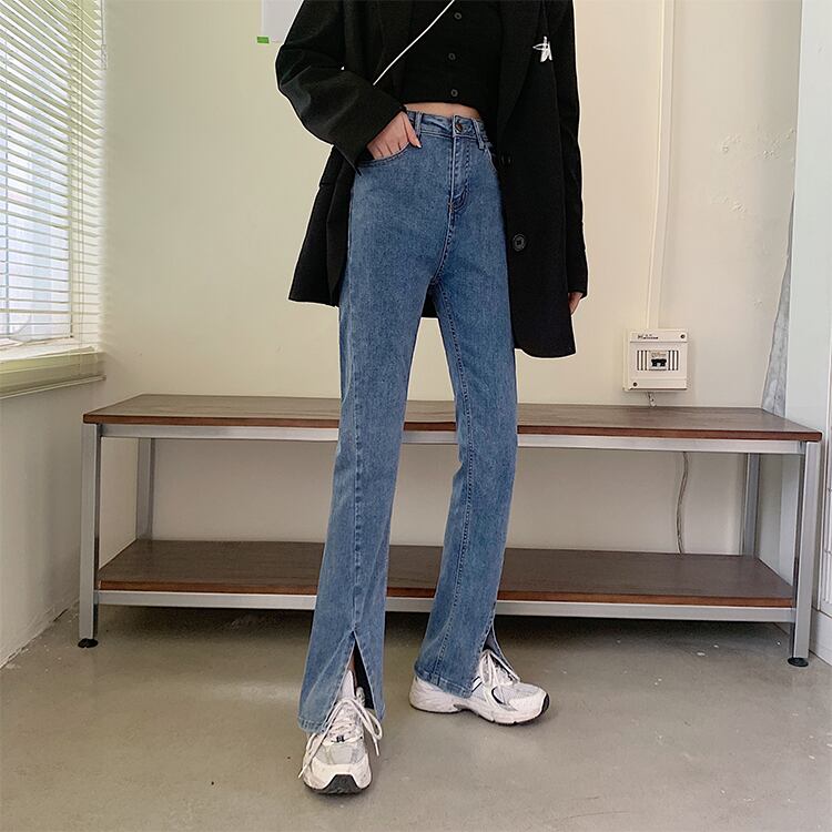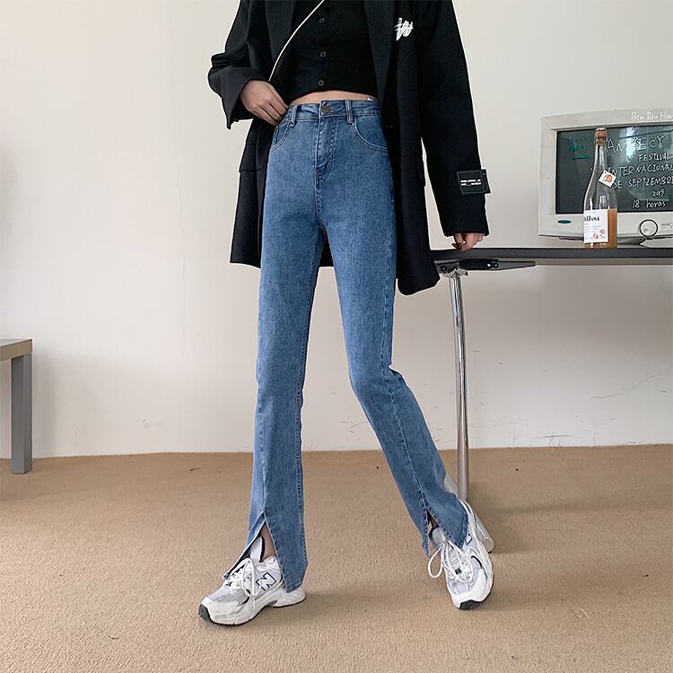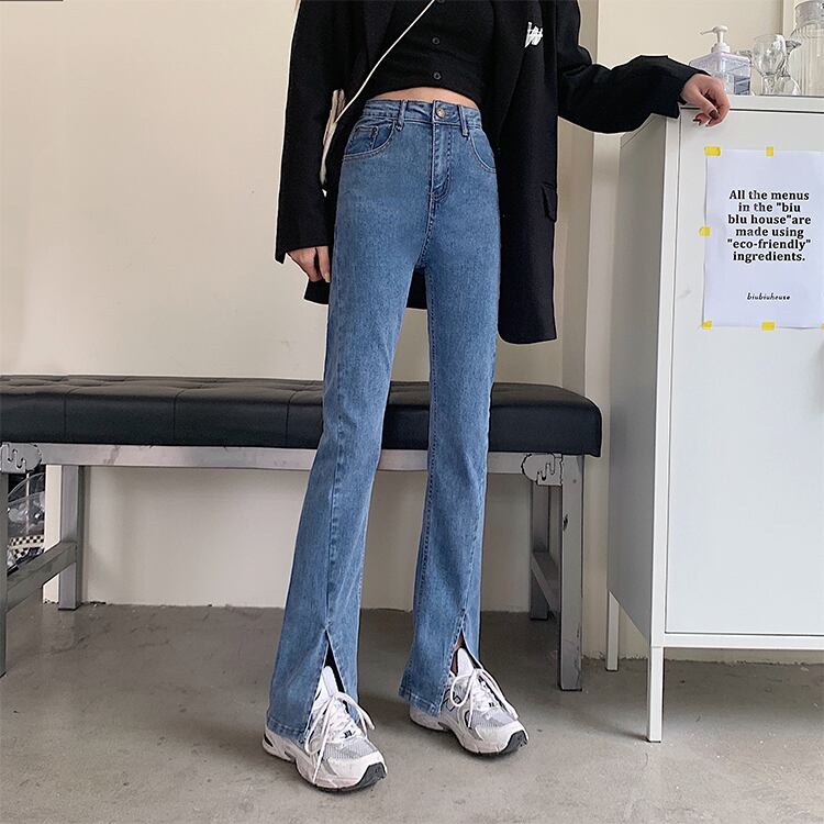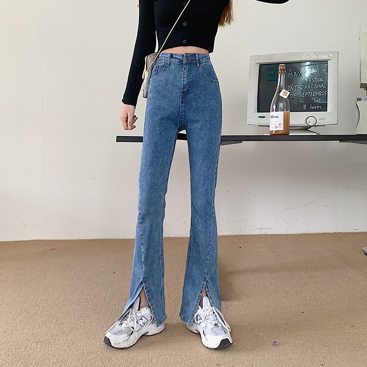 大きいサイズの婦人服 2023 春服脂肪姉妹新しい弾性スリットオールマッチ薄いフレアジーンズのズボン レッド エラスティック 伸縮 大きめサイズ スプリング 春物 8884171732658891
