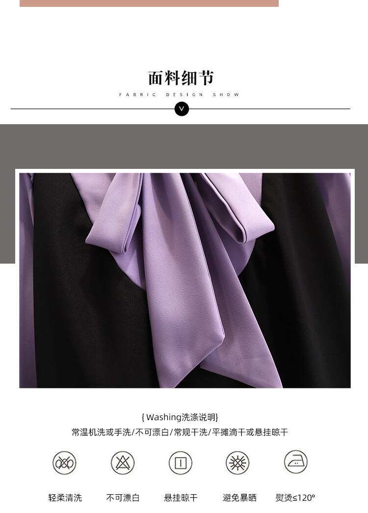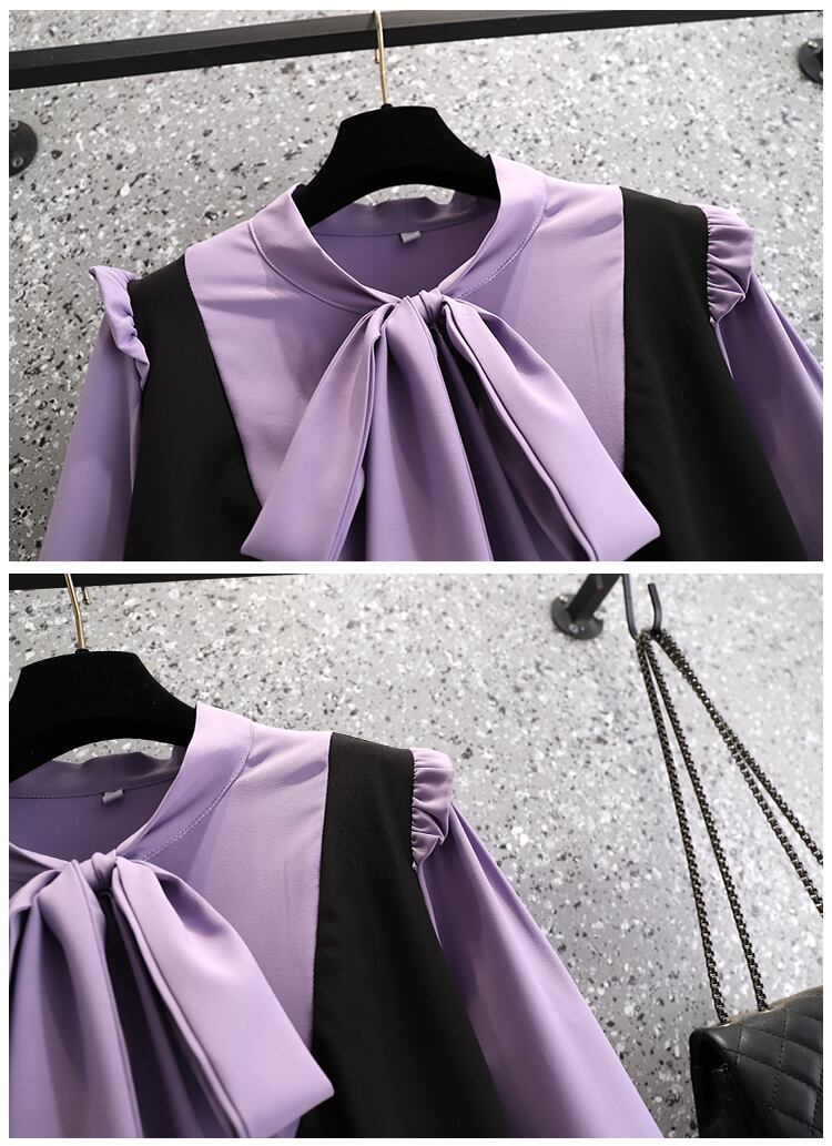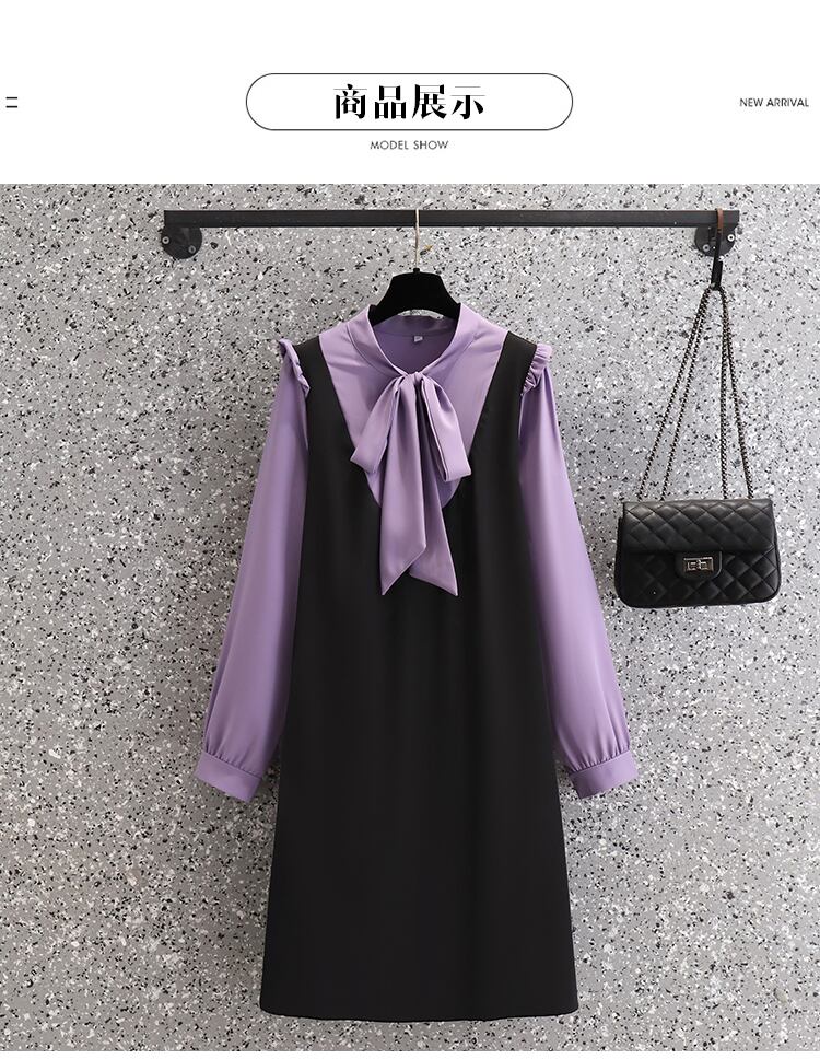 大きいサイズの婦人服 2023 春の新しいファットシスター年齢を減らすちょう結びのデザインセンススプライシングフェイクツーピースドレス リボン 大きめサイズ スプリング 春物 8884192968265644