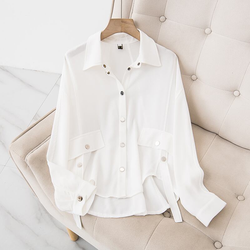 大きいサイズの婦人服 2023 春服ファットシスターズの新しいファッションオールマッチ年齢を減らすシンプルな気質のシャツルーズトップ 大きめサイズ スプリング 春物 8884178191484857