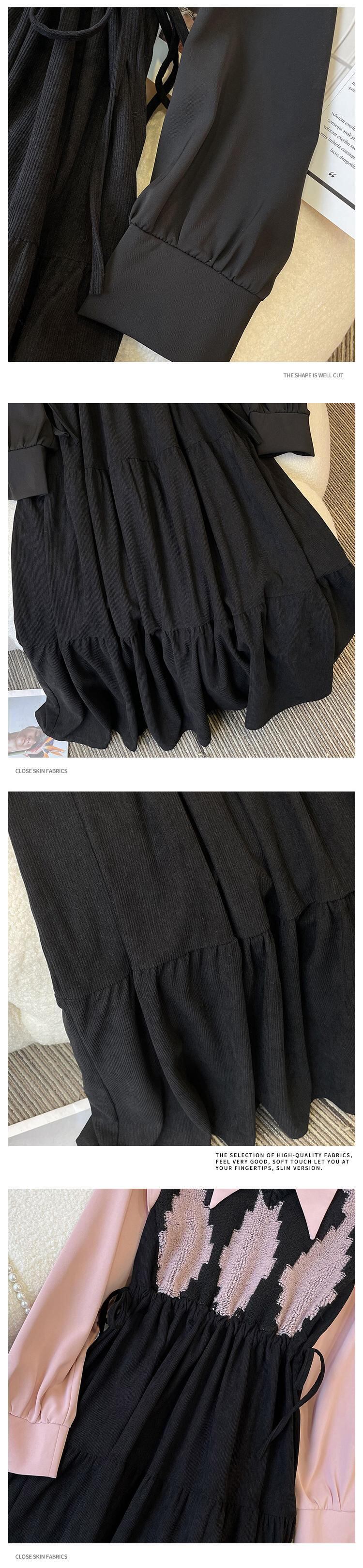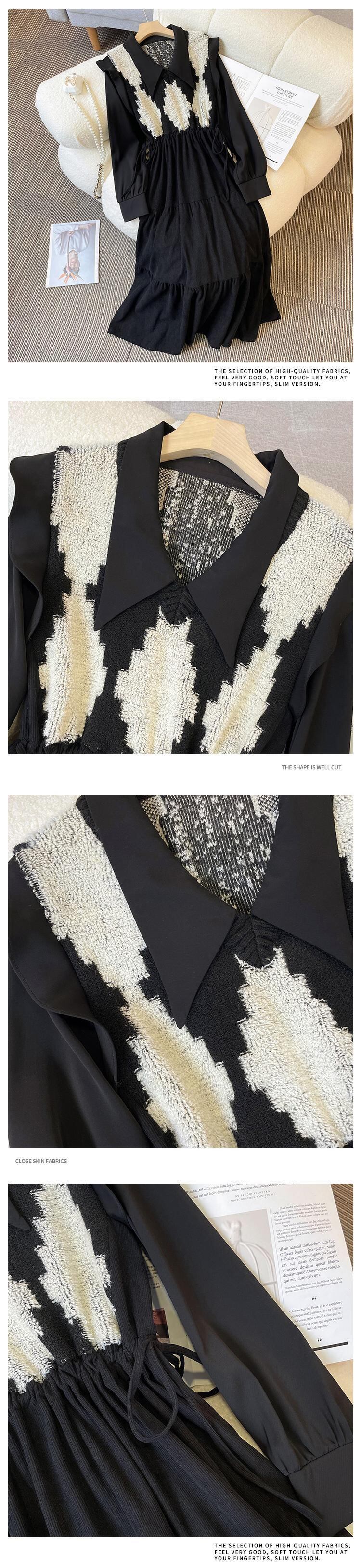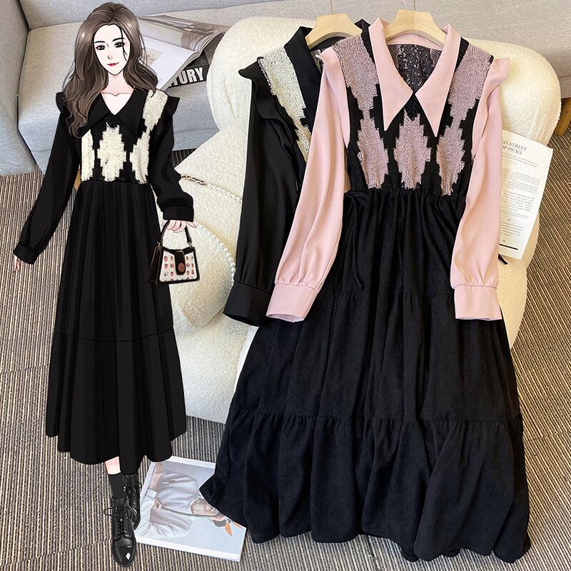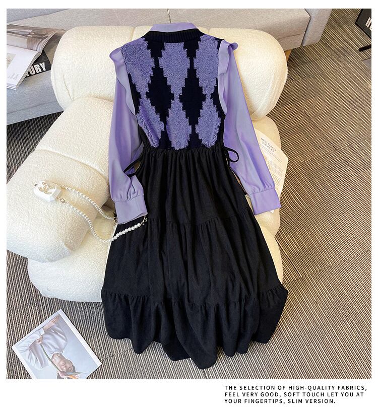 大きいサイズの婦人服 2023 春の新しいスタイルの太った姉妹の編み物とデザインのセンスのフェイクツーピースウエストフレンチドレス 大きめサイズ スプリング 春物 888417175713982