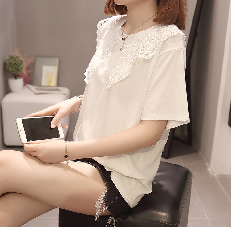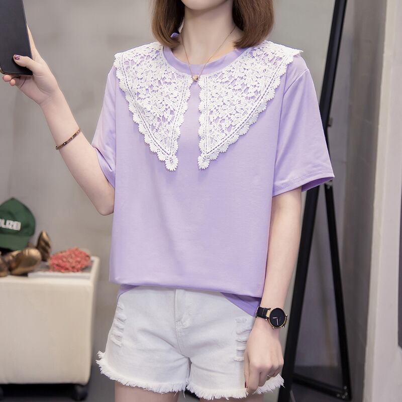 大サイズの婦人服 2023 夏新脂肪姉妹人形の襟スプライシング半袖 Tシャツシックなスリムトップス女性 大きめサイズ サマー 夏物 8884151158346689