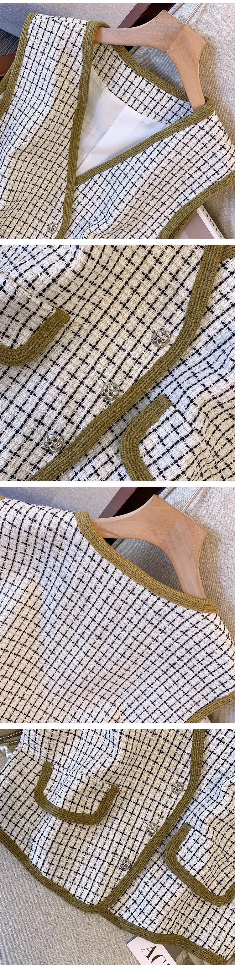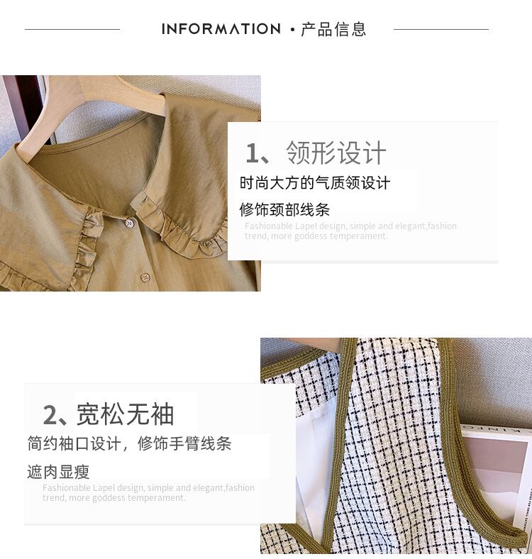 大きいサイズの婦人服 2023 春服脂肪姉妹新しい eign スタイル薄い人形の襟シャツ格子縞のベスト ツーピース スーツ 大きめサイズ スプリング 春物 8884178397742011