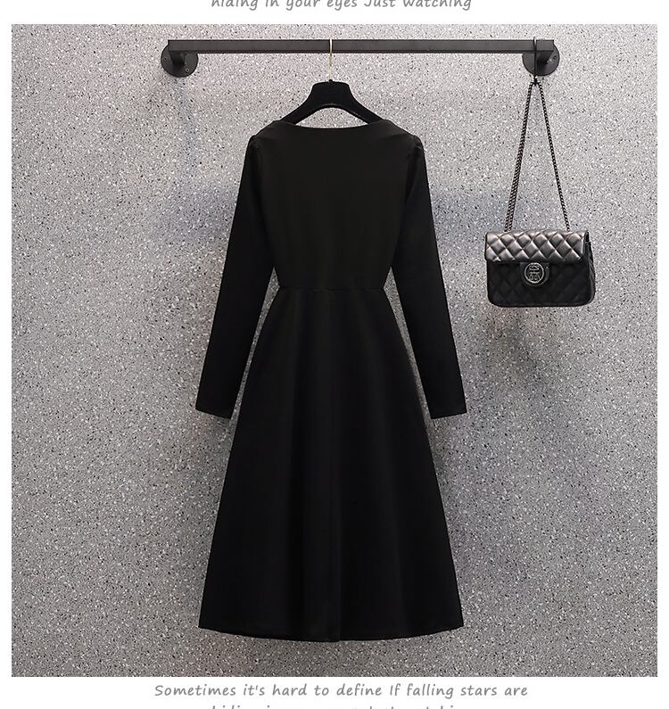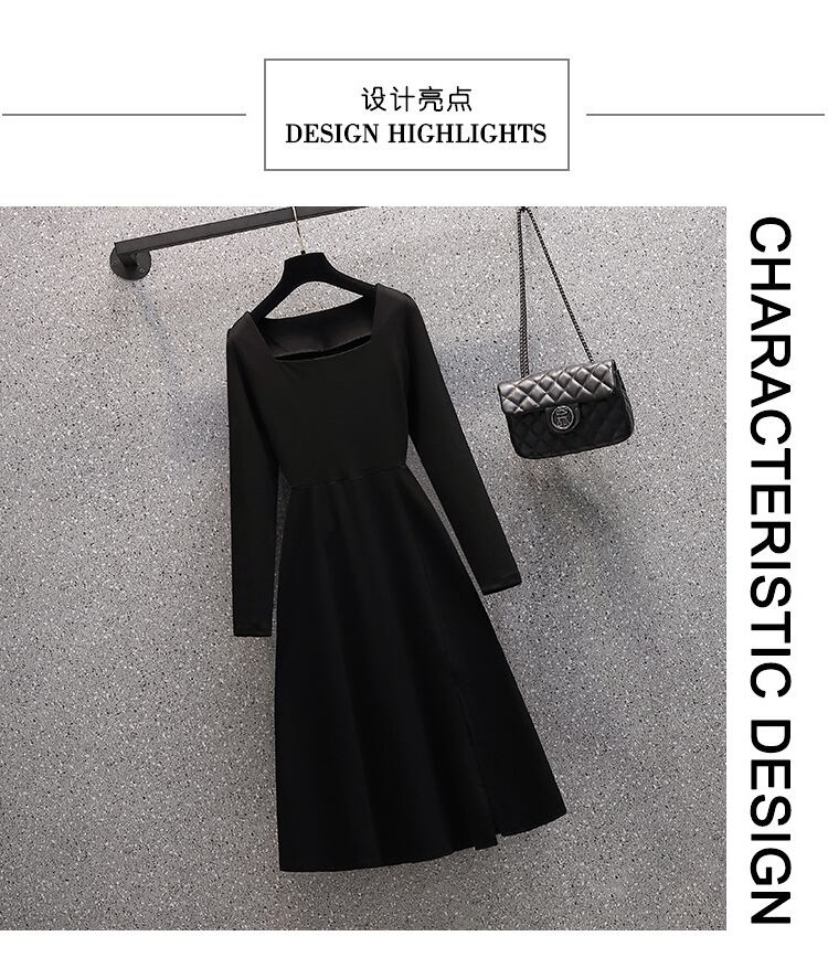大きいサイズの婦人服 2023 トレンディな女性の春の新しいファットシスター年齢を減らして薄いヘップバーンスタイルのミッドレングスのスリットのドレスの女性 大きめサイズ スプリング 春物 8884191958214003