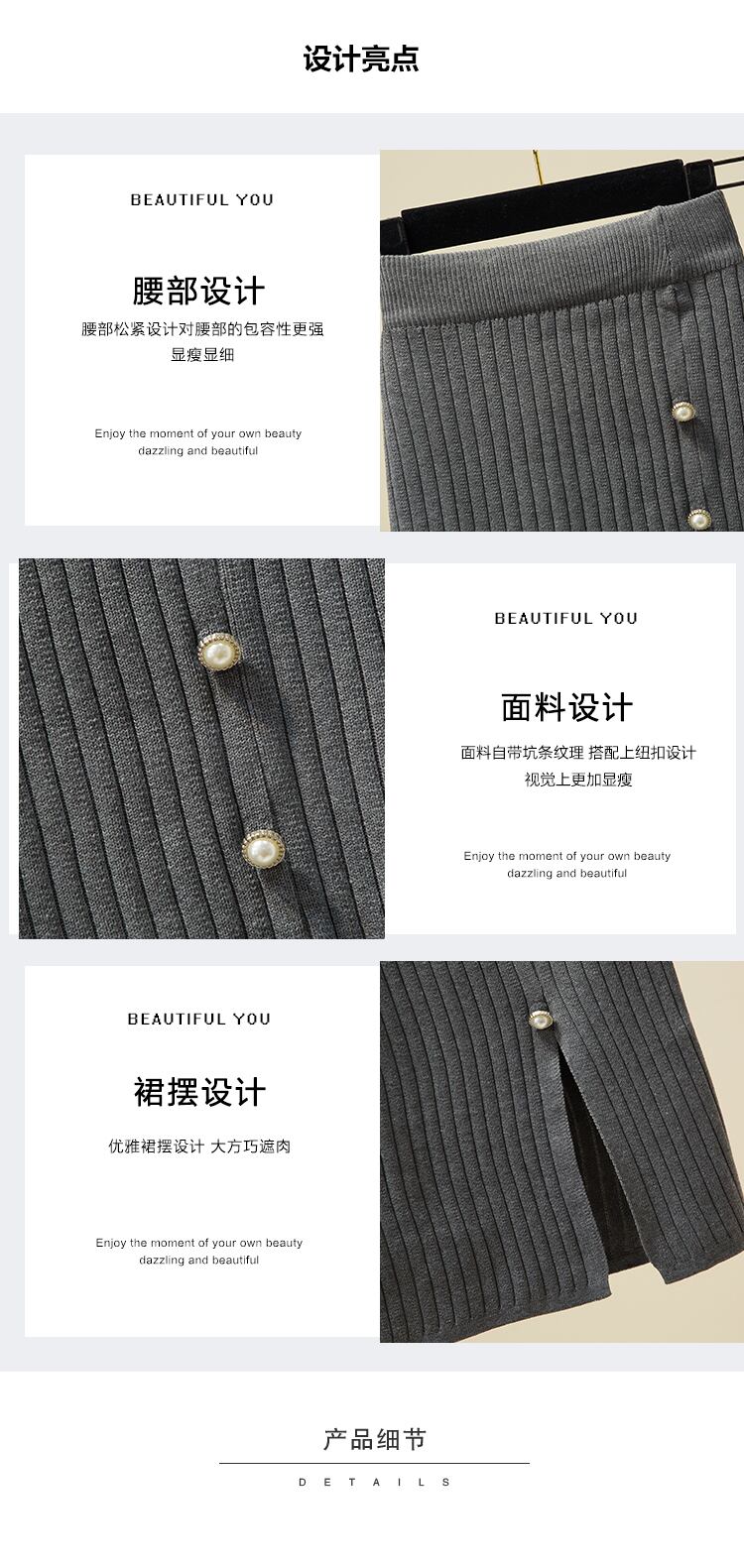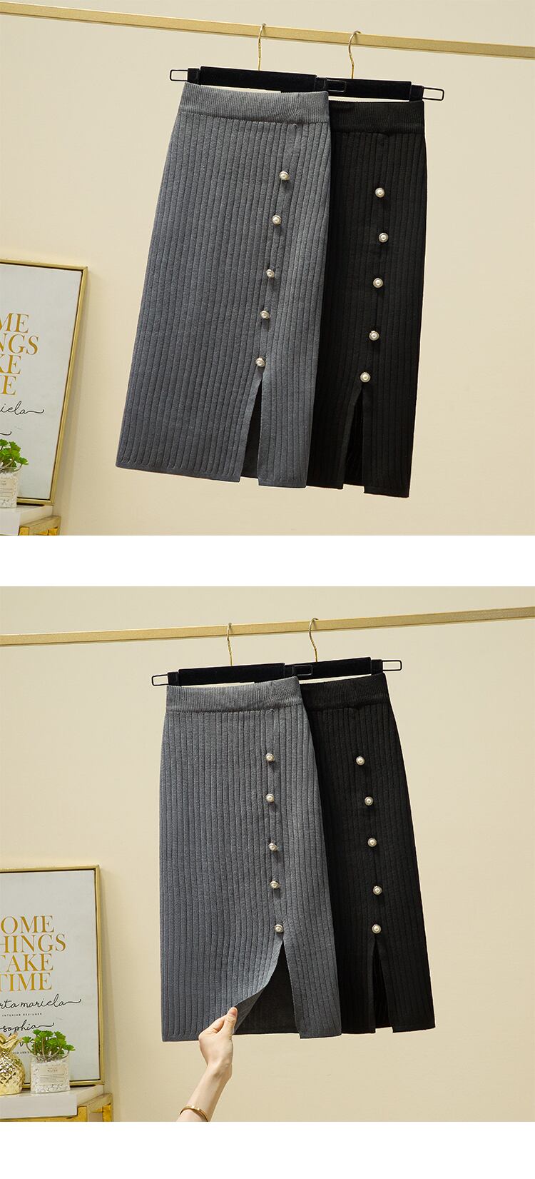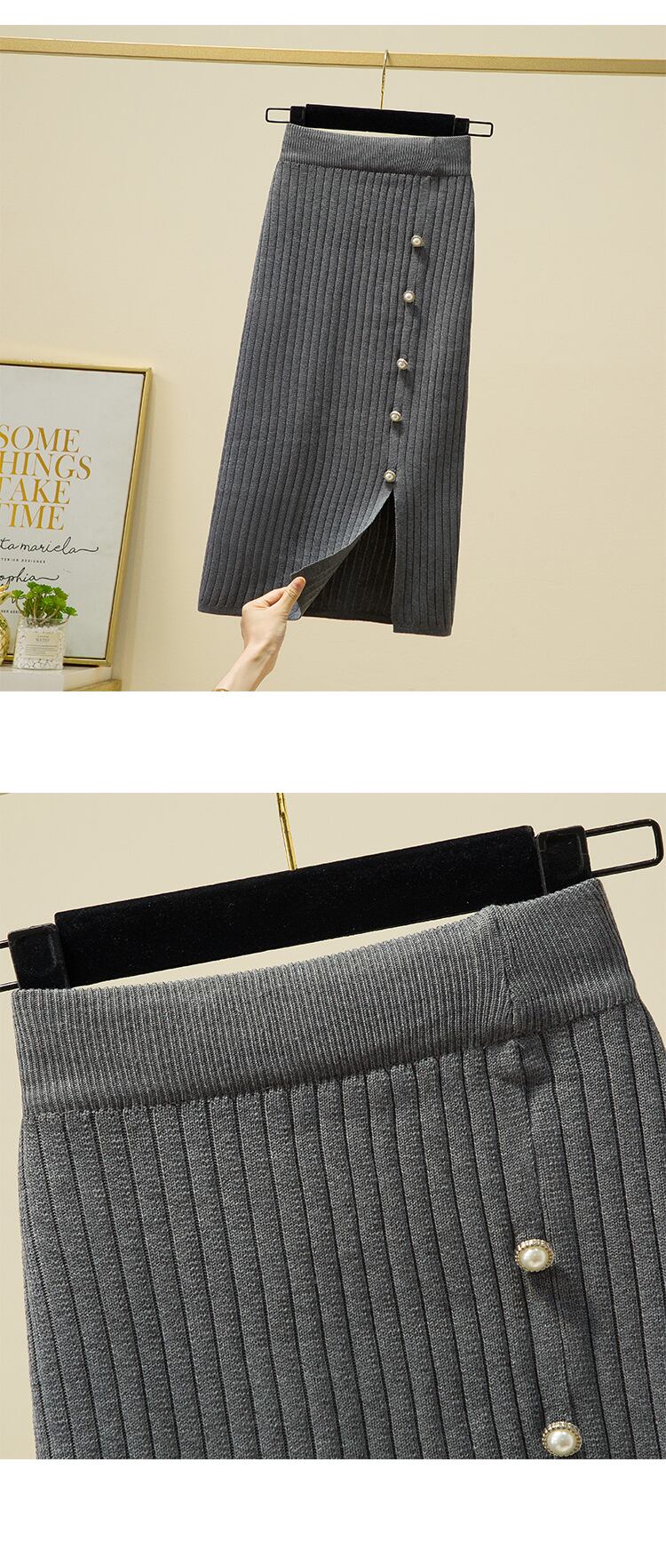 プラスのサイズの婦人服 2023 ファット シスター春の新バージョン スリム ハイ ウエスト オールマッチ肉カバー スリット ニット スカート ハイウェスト 大きめサイズ スプリング 春物 8884168827299757