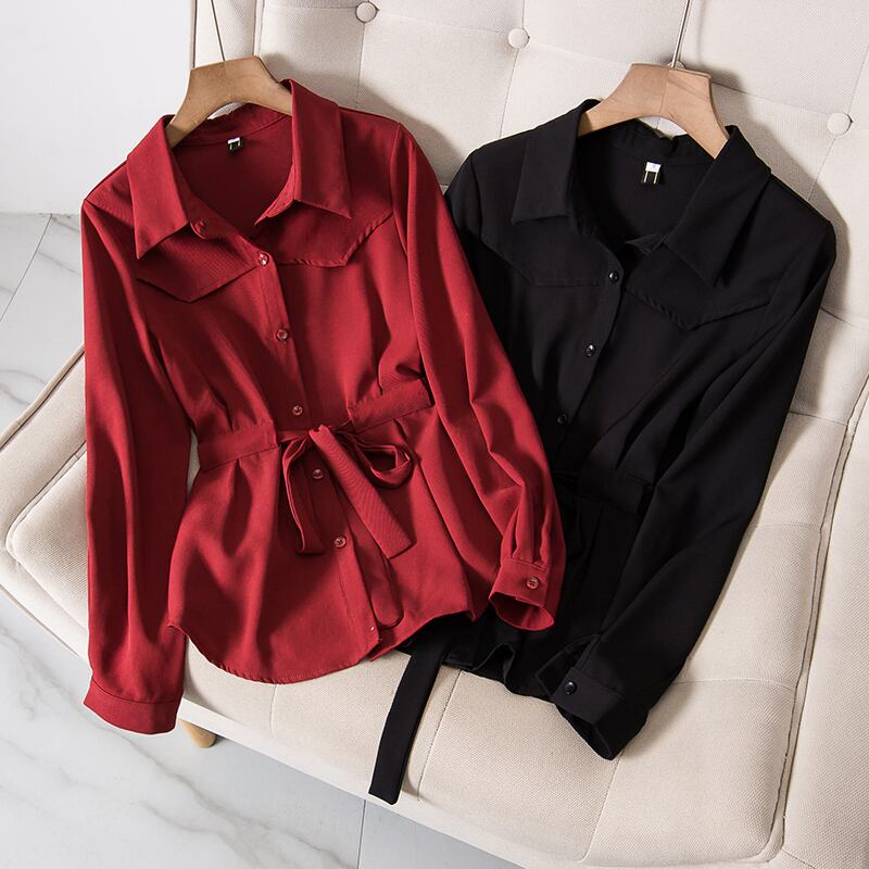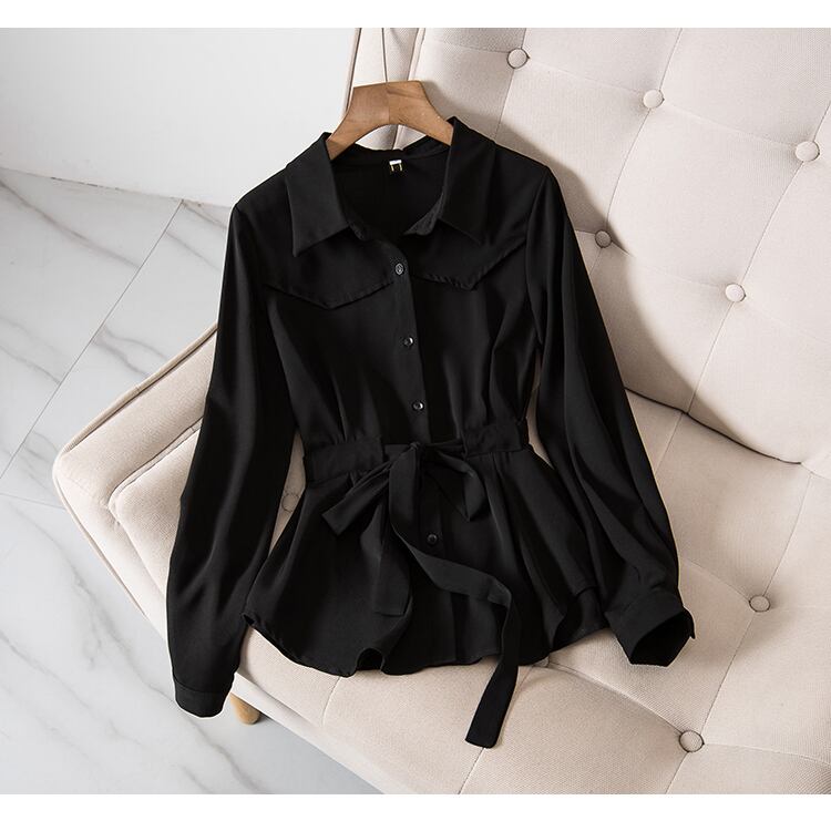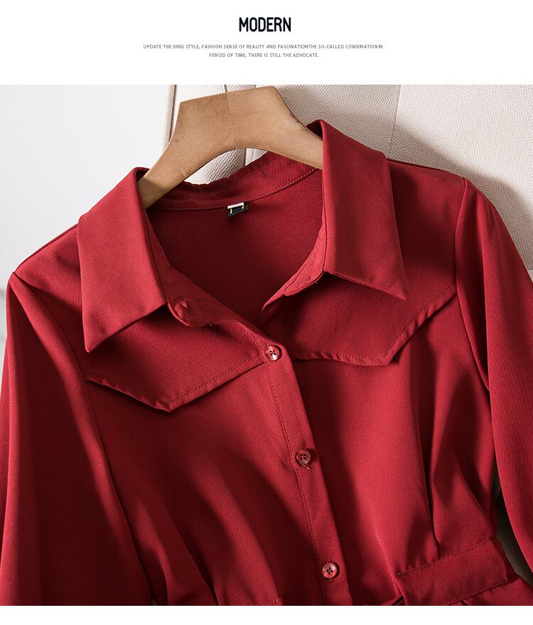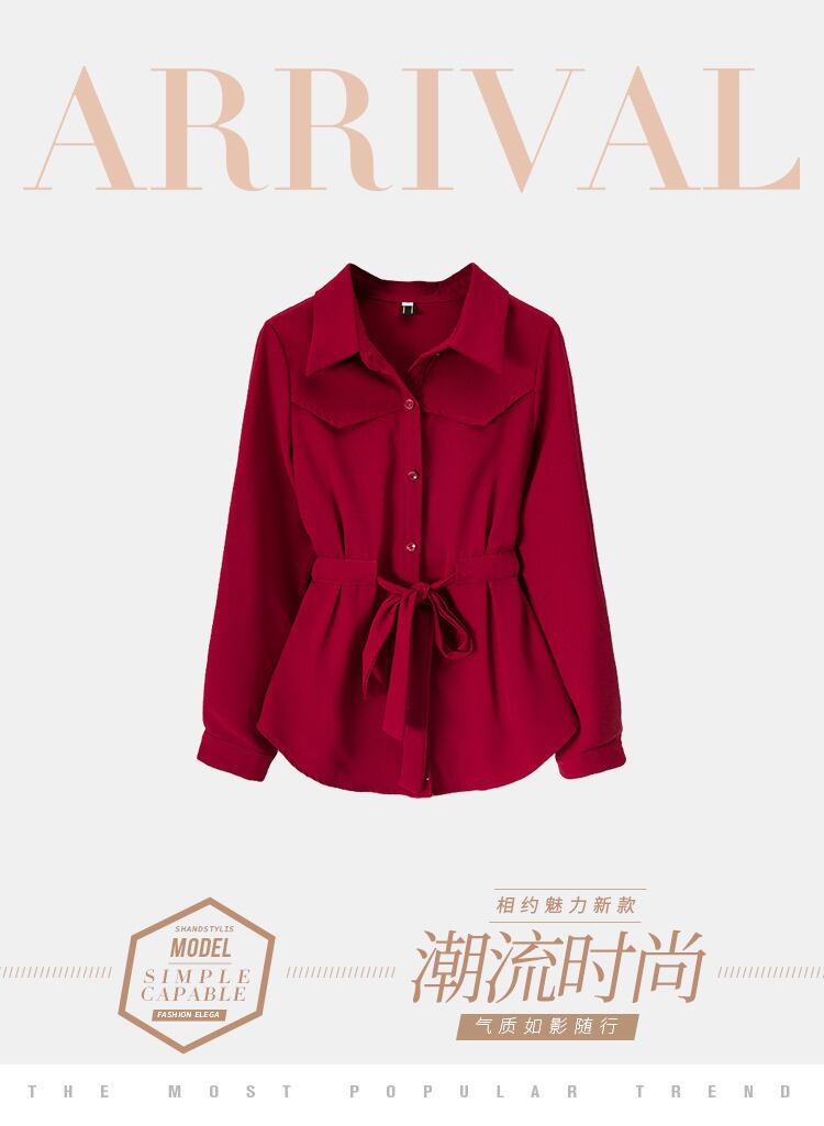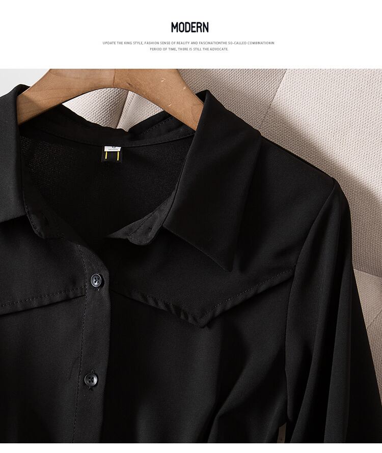 プラスサイズの婦人服 2023 ファットシスター春の新ファッション全試合腹カバーシャツウエスト痩身長袖シャツ ロング 大きめサイズ スプリング 春物 8884190575504579