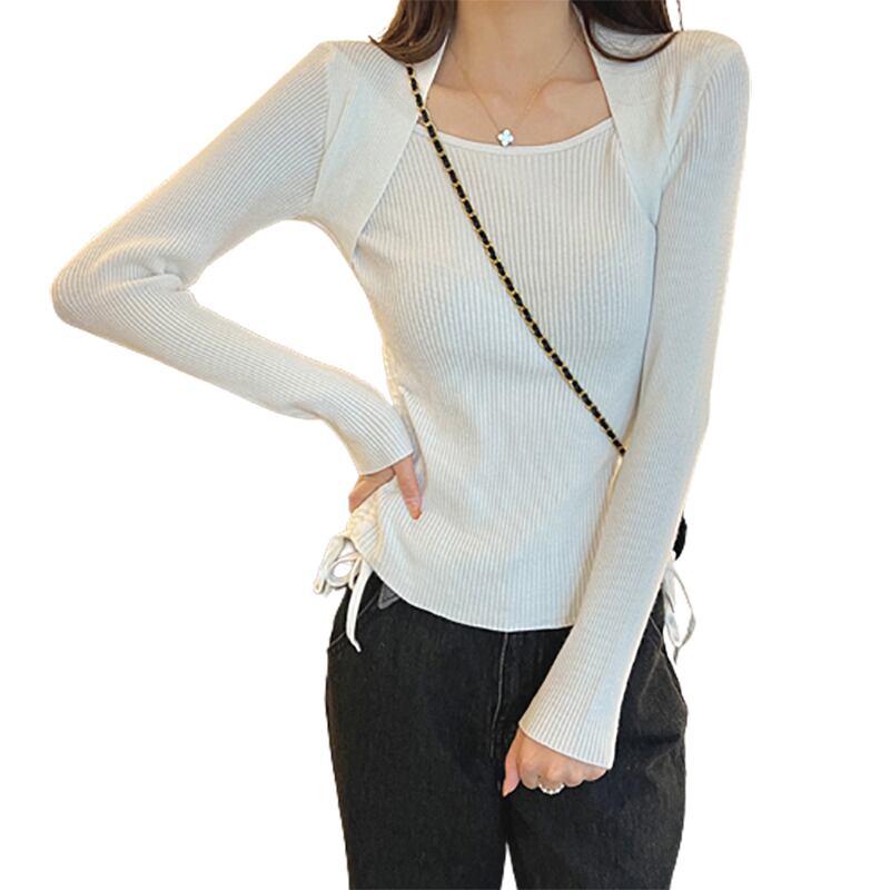プラスサイズの婦人服 2023 トレンディな女性の春の新しい太った姉妹モデル慎重にマシン巾着偽ツーピース薄い垂直ピット ストリップ セーター 大きめサイズ スプリング 春物 8884142531087341
