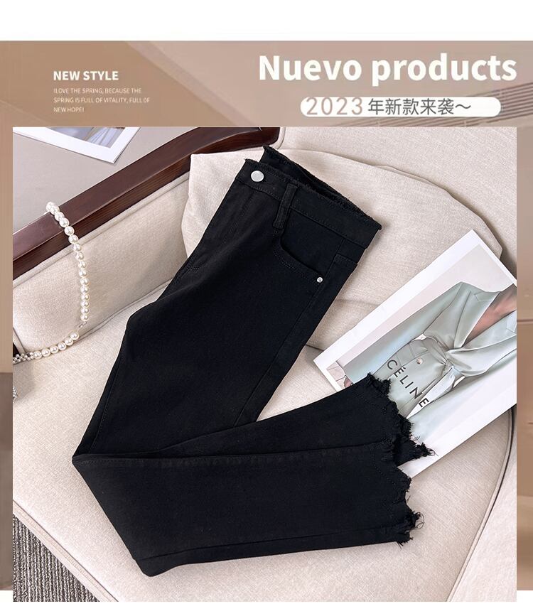 プラスサイズの婦人服 2023 夏の新しいファットシスターデザインセンス不規則なスリム弾性小さな足のジーンズの女性 エラスティック 伸縮 大きめサイズ サマー 夏物 888415166605705