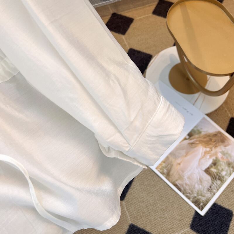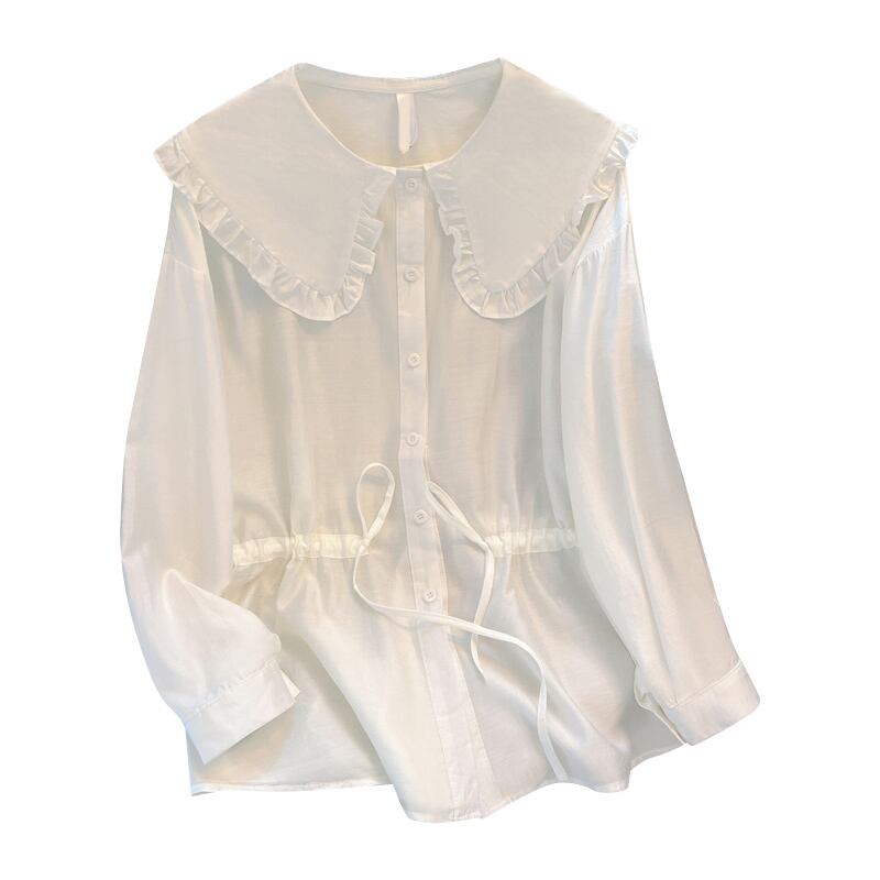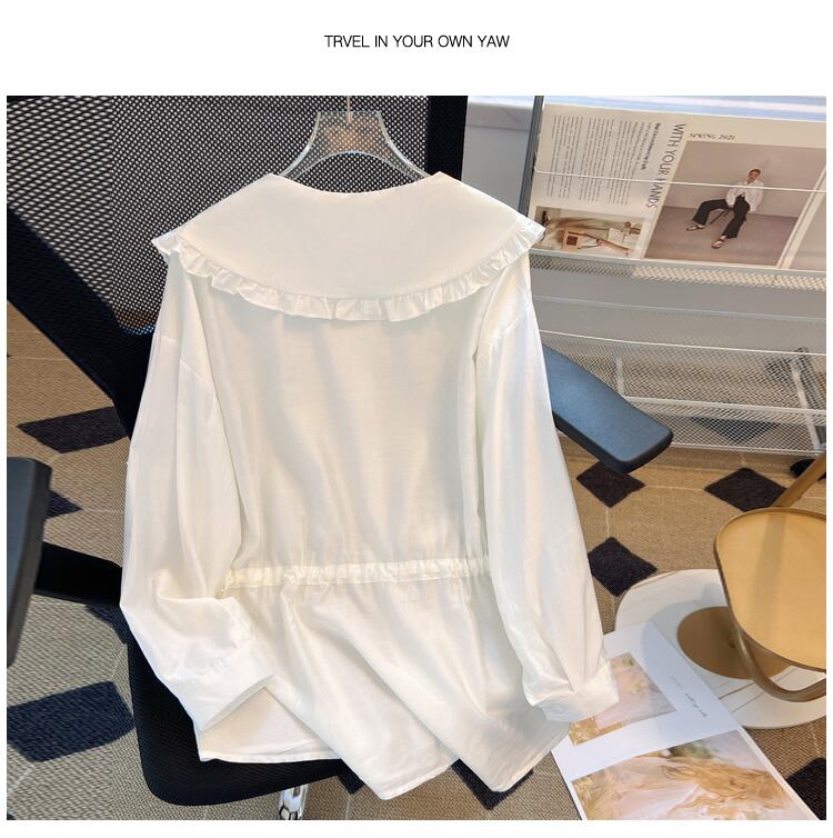 プラスサイズの婦人服 2023 春の新しいファットシスタールース長袖シャツスリム巾着年齢削減シックなシャツ女性 ロング 大きめサイズ スプリング 春物 8884180303887873
