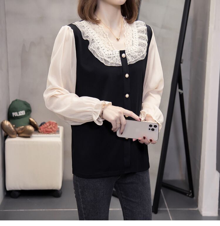 プラスサイズの婦人服 2023 春の新しい太った妹の年齢を減らす気質に見える薄い長袖のオールマッチ肉を覆うデザインのセンス Tシャツ ロング 大きめサイズ スプリング 春物 8884138718042004
