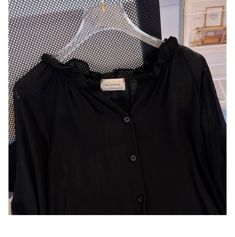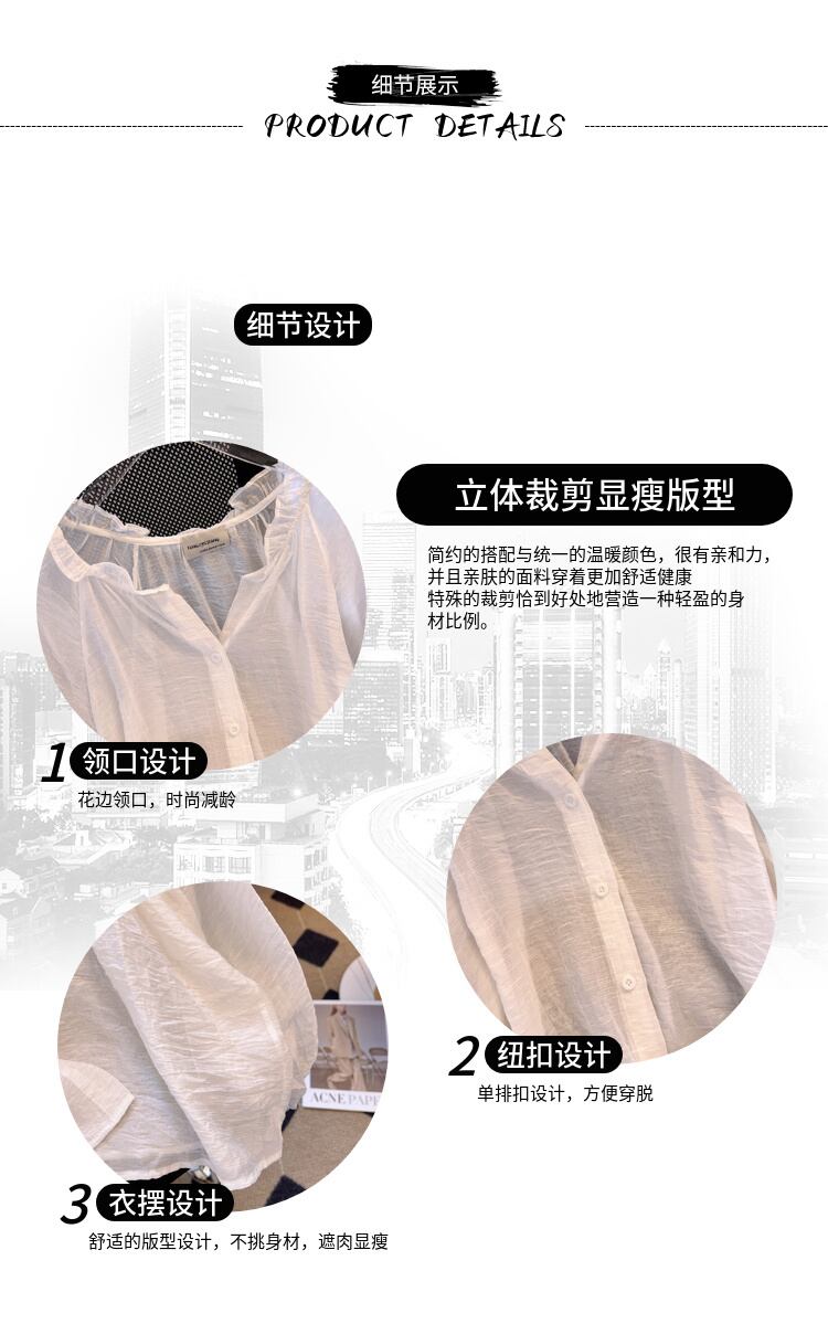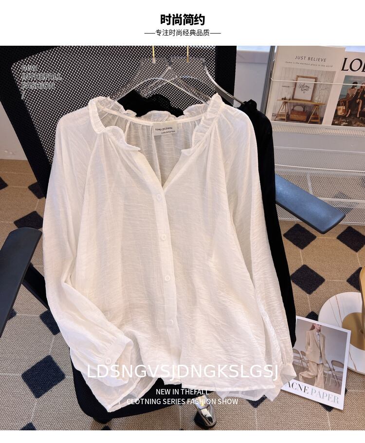 プラスサイズの婦人服 2023 春服脂肪姉妹新フレンチスタイルルーズウッド耳スリム v ネック長袖シャツ女性 ロング 大きめサイズ スプリング 春物 Vネック 8884197076592155