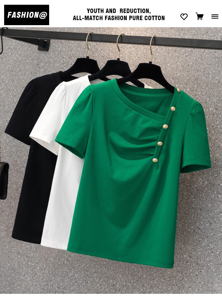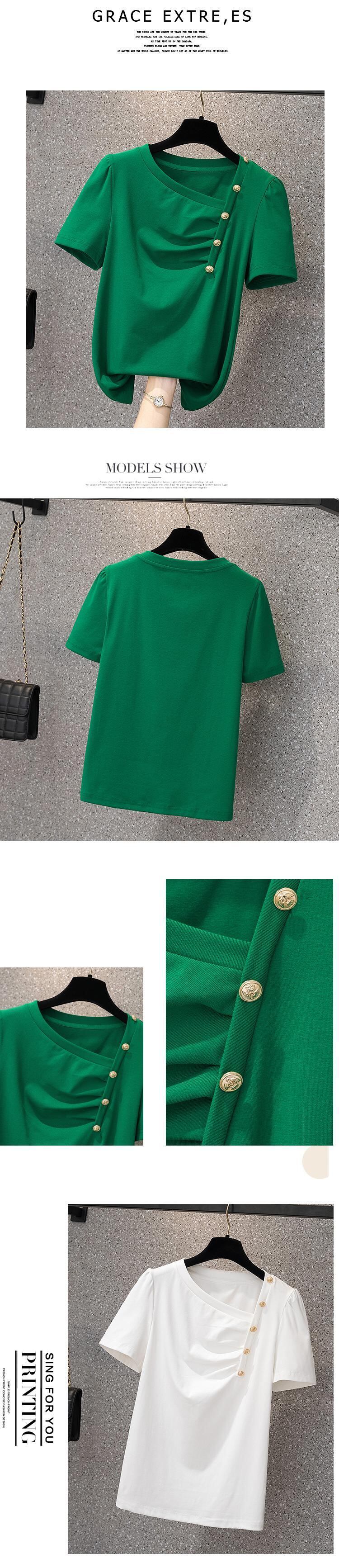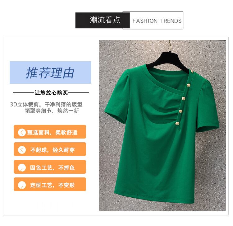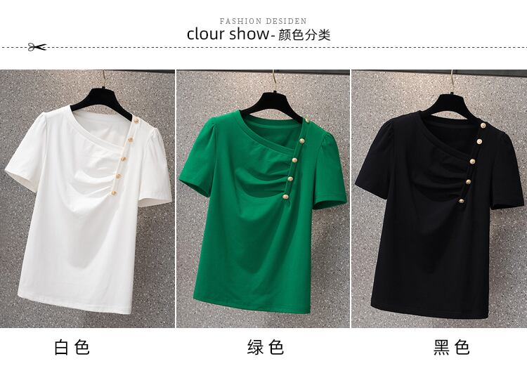 大きいサイズの婦人服 2023 夏の新しいファット シスター デザイン センス ニッチ 不規則なファッション 年齢を減らす薄い t シャツ 大きめサイズ サマー 夏物 Tシャツ 8884143312244634