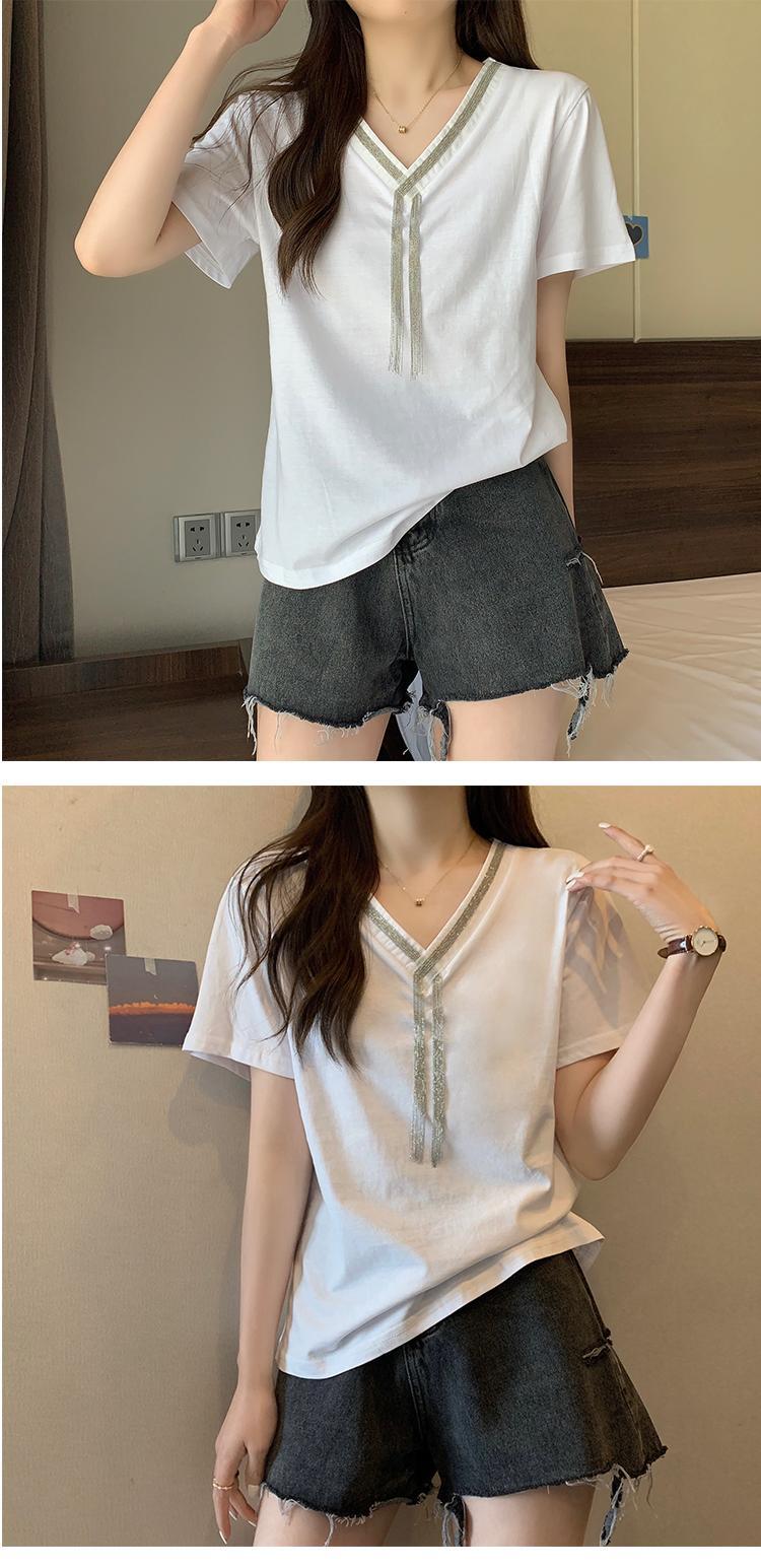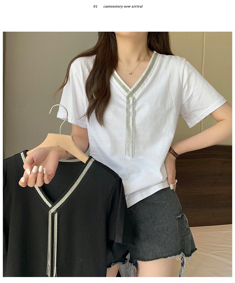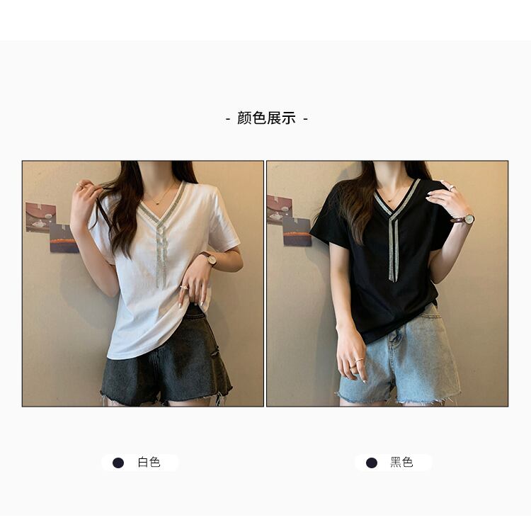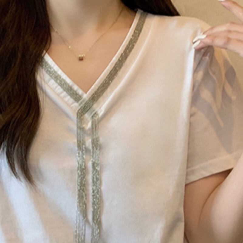プラスサイズの婦人服2023夏の新しいファットシスターデザインセンスVネック半袖シックカジュアルカジュアルTシャツ肉カバー付き 大きめサイズ サマー 夏物 888413558577860