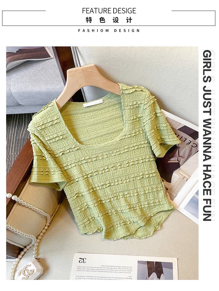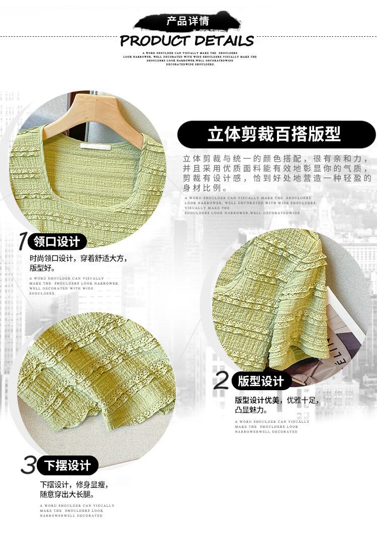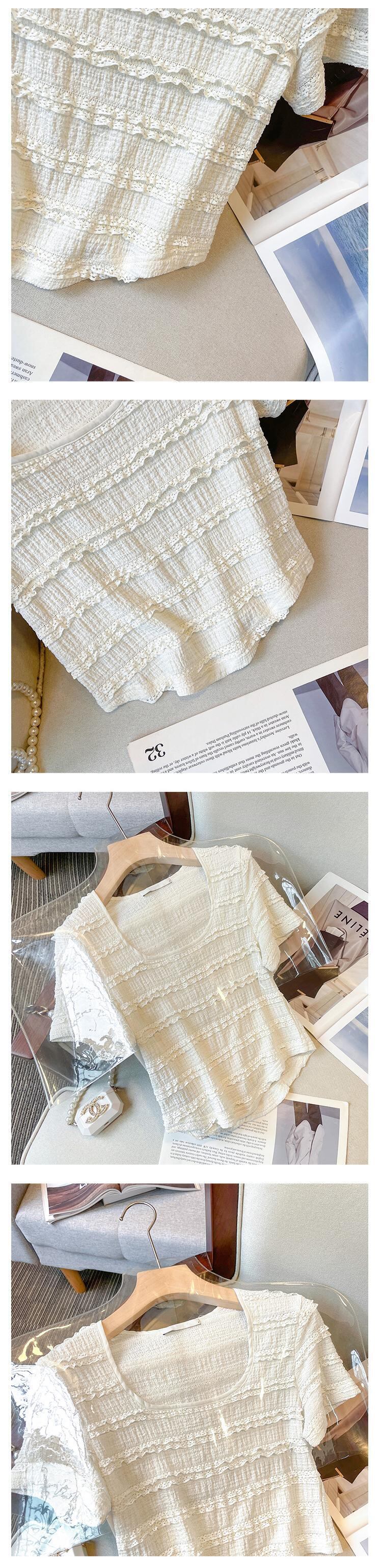 プラスサイズの婦人服 2023 ファットシスター夏の新ファッション弾性スクエアカラー半袖レースシャツ甘いショートトップ エラスティック 伸縮 大きめサイズ 大人ガーリー スウィート キュート カジュアル サマー 夏物 スクウェア 8884126978294603
