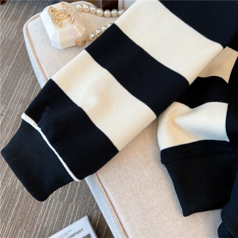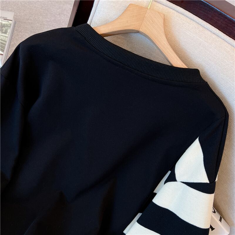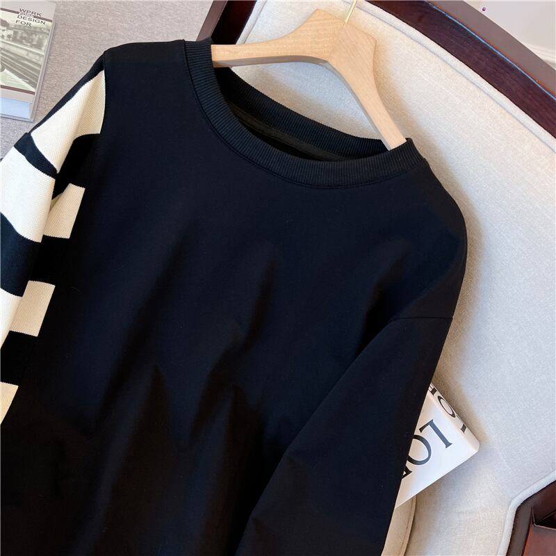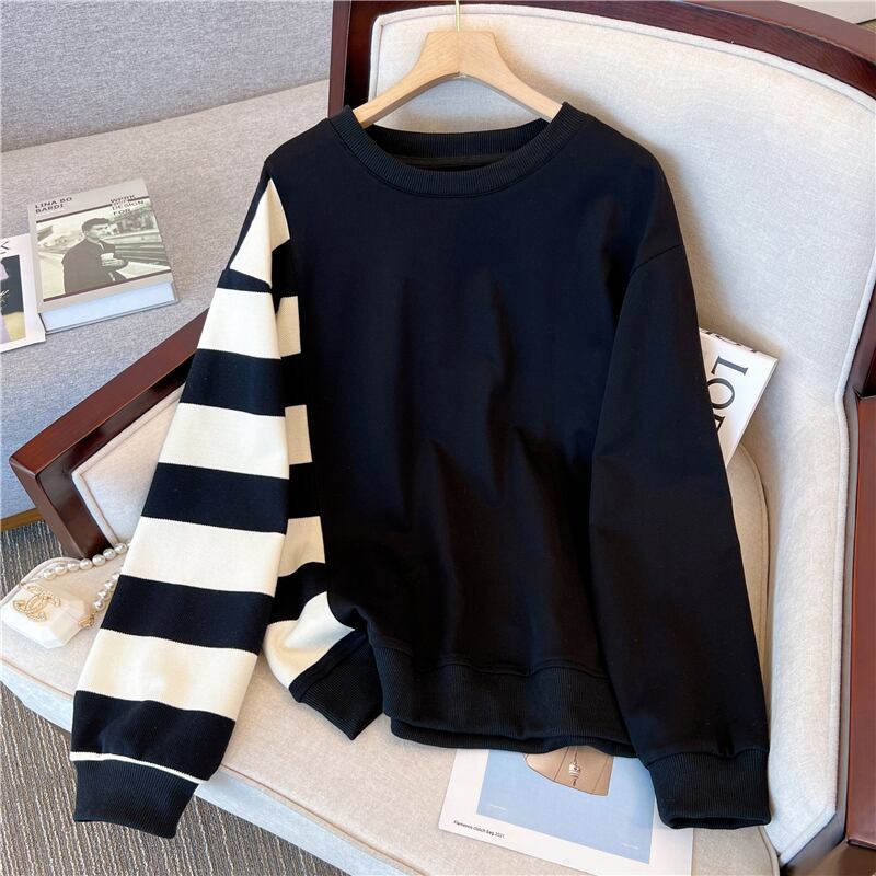 プラスサイズの婦人服 2023 脂肪姉妹春の新バージョンステッチストライプ緩いスリムセーター長袖トップ女性 ロング 大きめサイズ スプリング 春物 8884199507317756