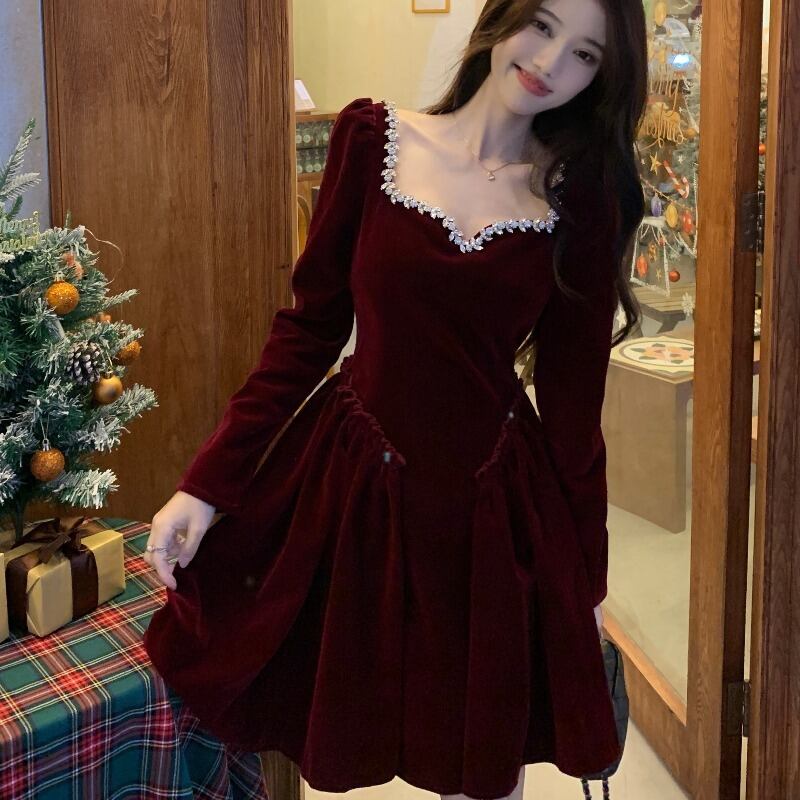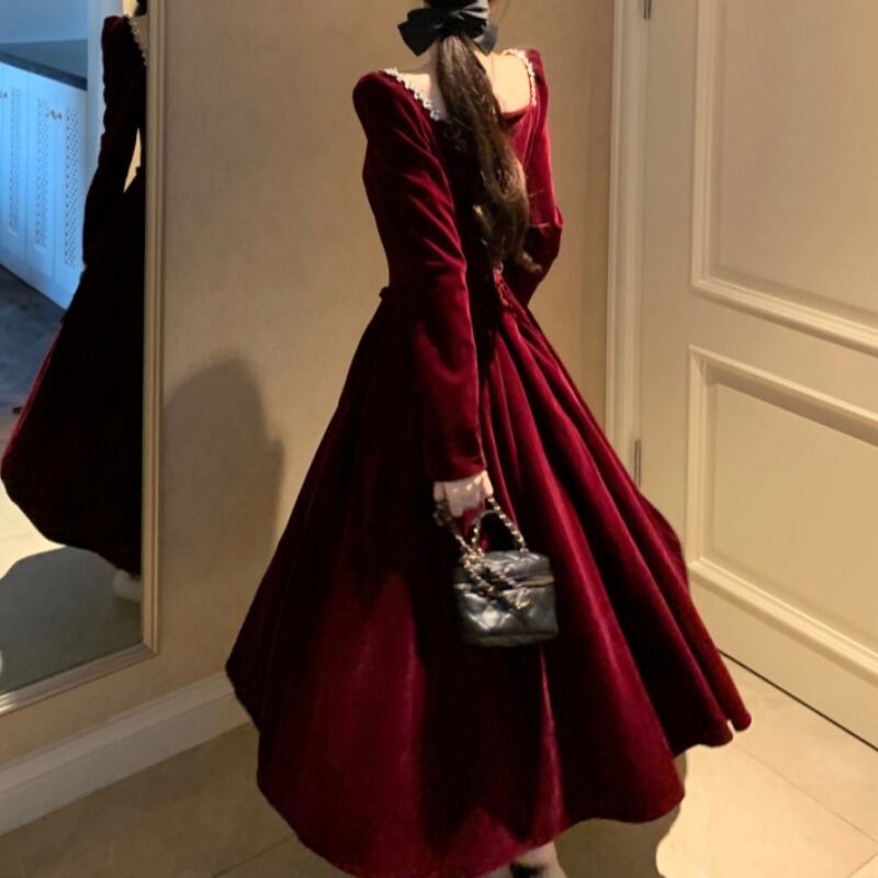 プラスサイズの婦人服 2023 トレンディな女性の春の新しい太った姉妹の気質年齢を減らすオールマッチスリムウエスト長袖ドレス ロング 大きめサイズ スプリング 春物 8884112058778078