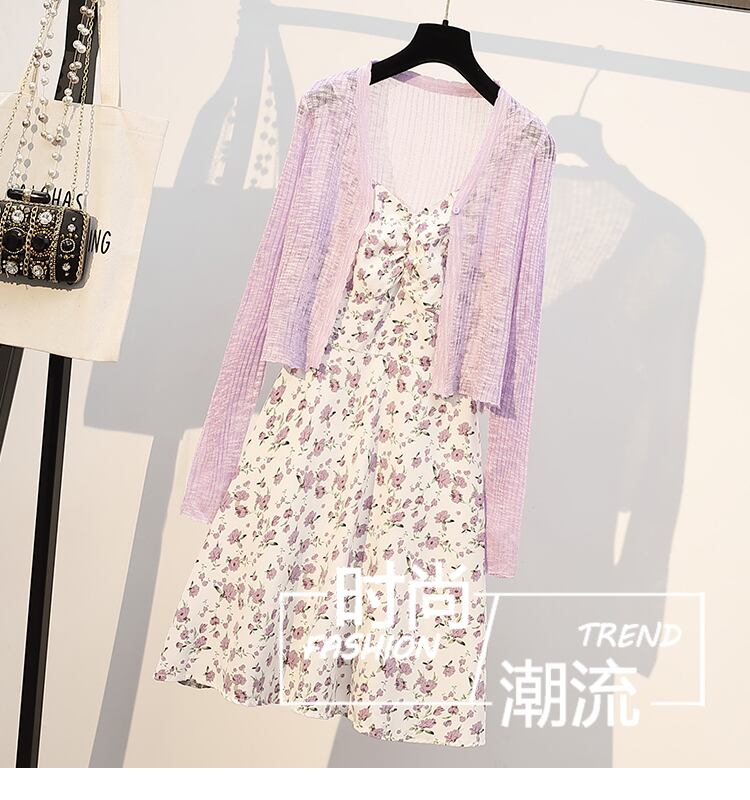 プラスサイズの婦人服 2023 夏の新しい脂肪姉妹シフォン気質ジャケット年齢を減らす花柄サスペンダー スカート 2 点セット 大きめサイズ サマー 夏物 8884196722554101