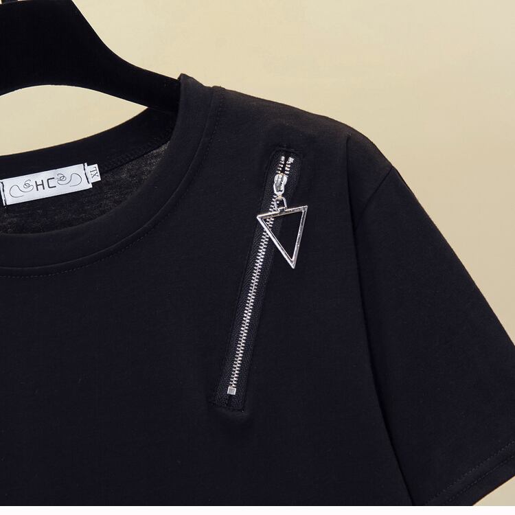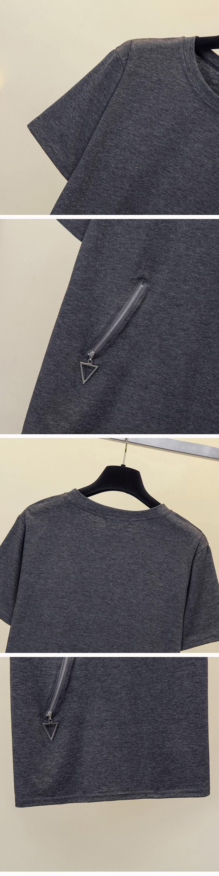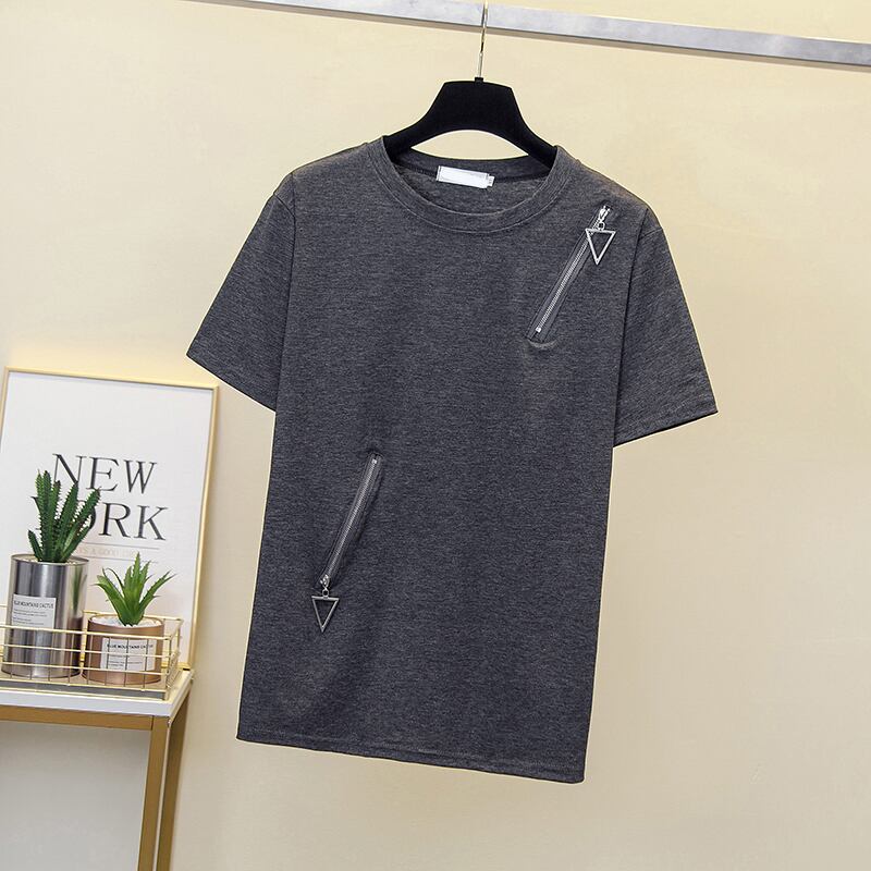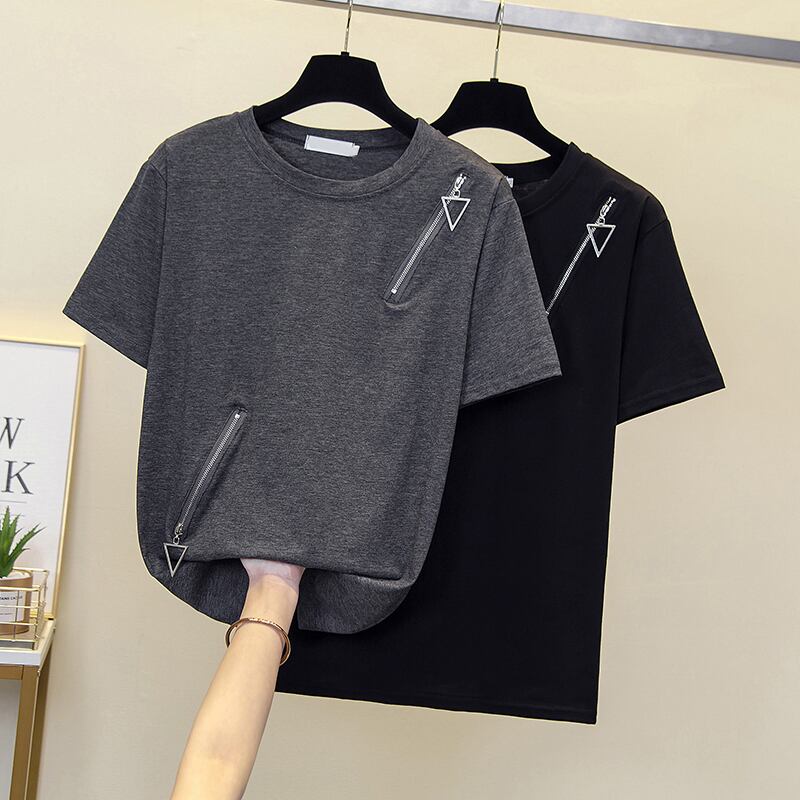 プラスサイズの婦人服 2023 夏の新しいスタイルのファットシスター緩い洋風オールマッチファッションステッチ半袖腹カバートップ女性 大きめサイズ サマー 夏物 8884152367235496