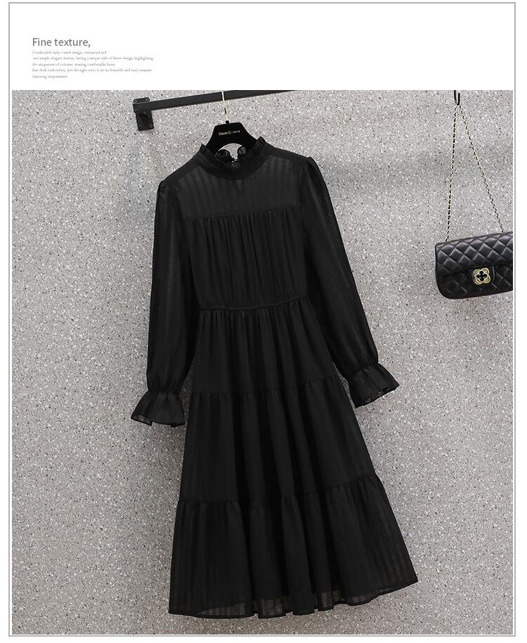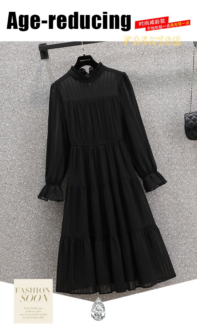 大きいサイズの婦人服 2023 春の新しい太った姉妹のウエスト フレンチ 気質デザイン センス無地肉カバー ドレス 大きめサイズ スプリング 春物 ソリッドカラー 8884139269288006