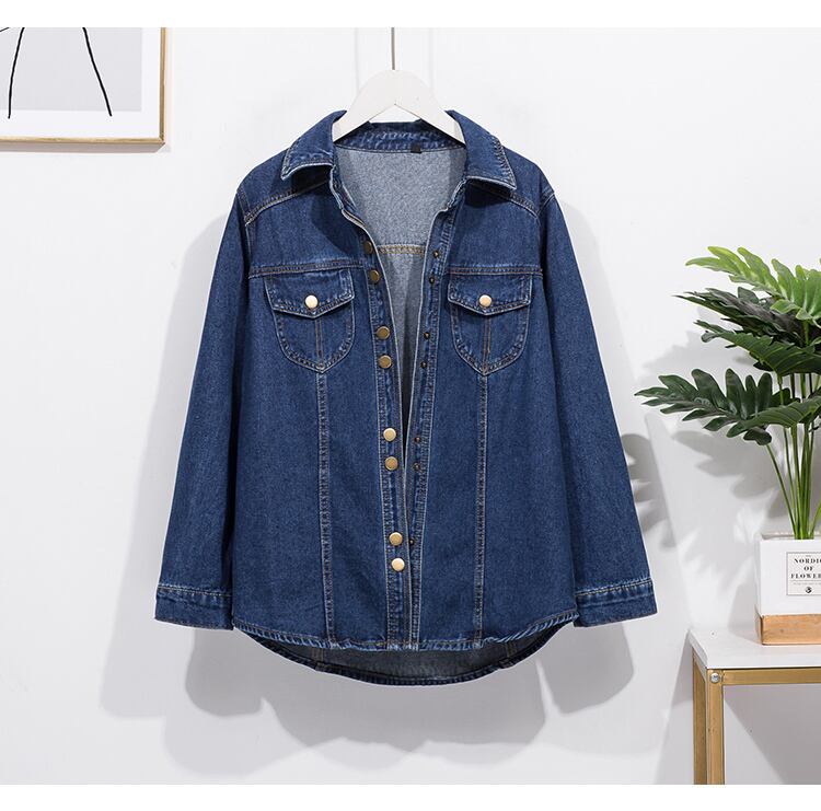 プラスサイズの婦人服 2023 ファットシスター春の新レトロデニムジャケット金属バックル緩い長袖カーディガンジャケット ロング 大きめサイズ スプリング 春物 888412021292417