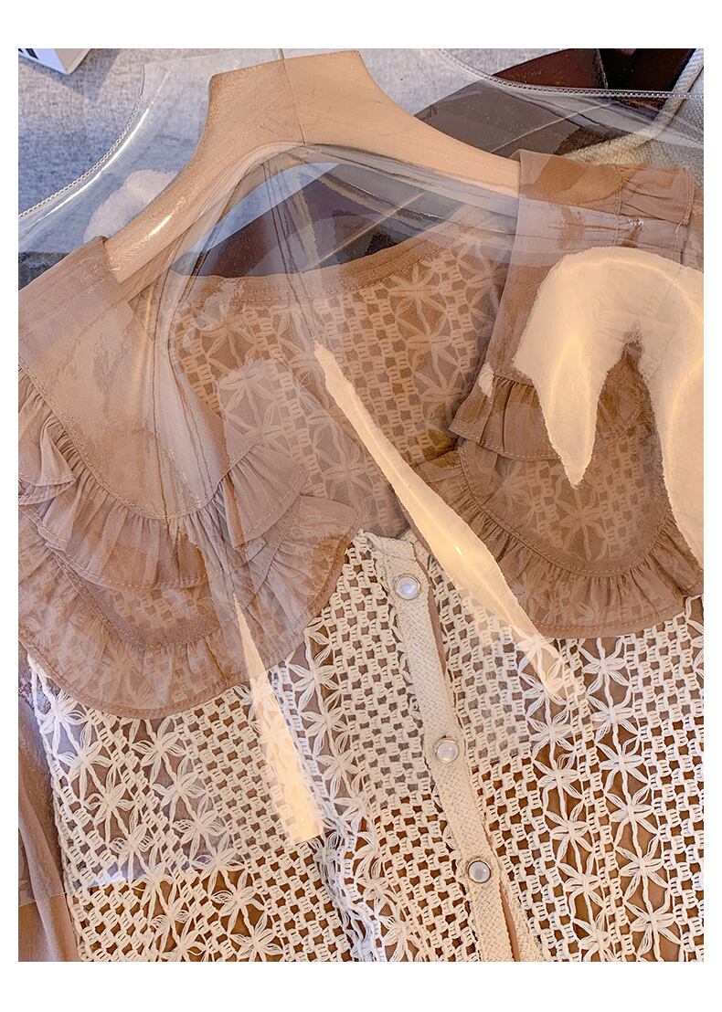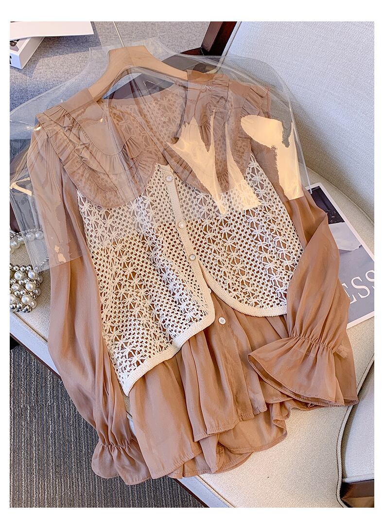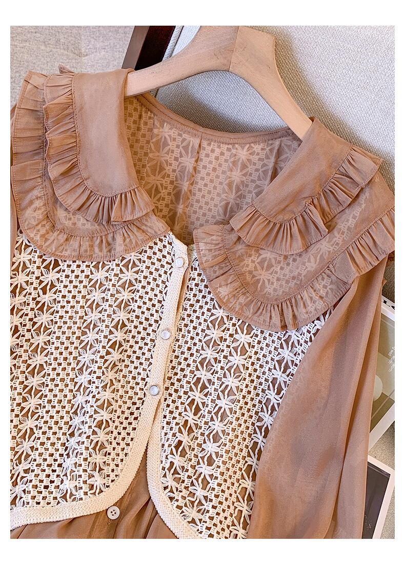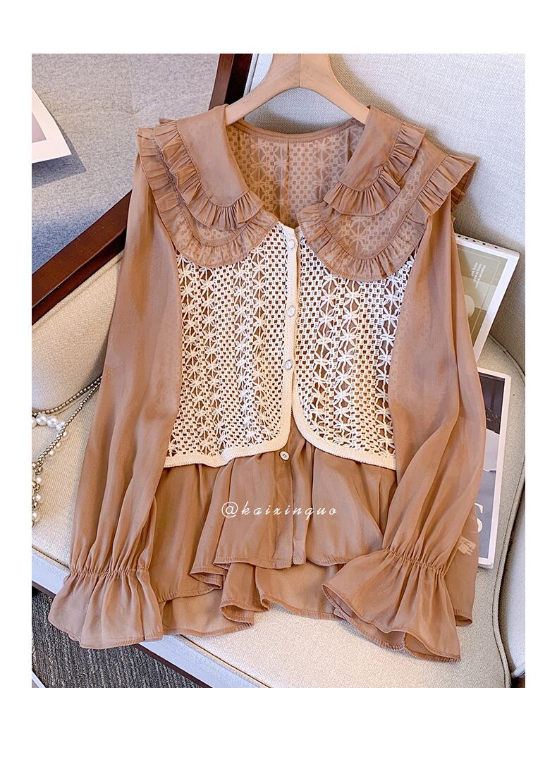 大きいサイズの婦人服 2023 春の新作服 ファットシスターズ 新作 フェイク二枚甘い 引き締め人形の襟 長袖 シフォンシャツ ロング 大きめサイズ 大人ガーリー スウィート キュート カジュアル スプリング 春物 8884129284472290