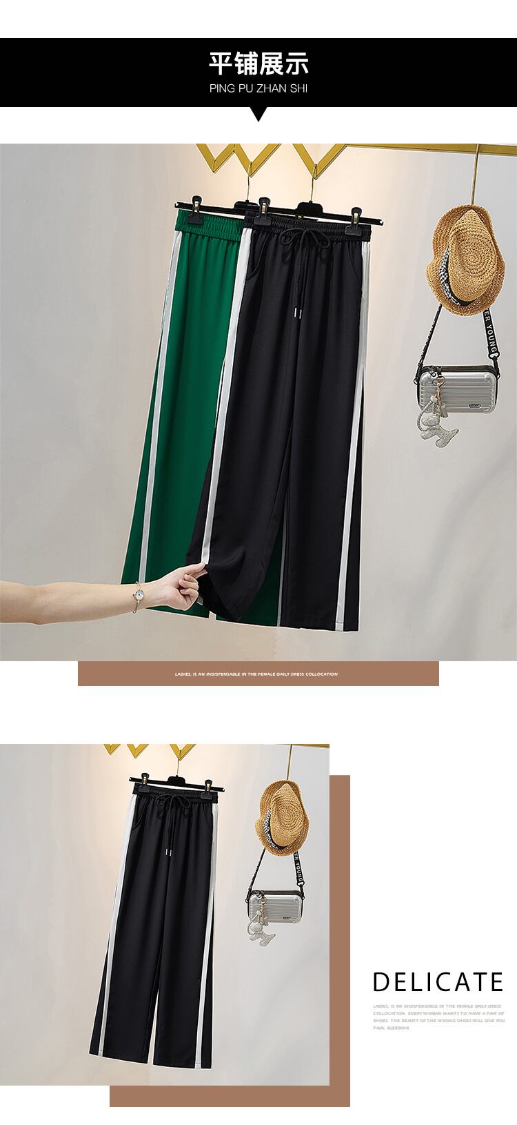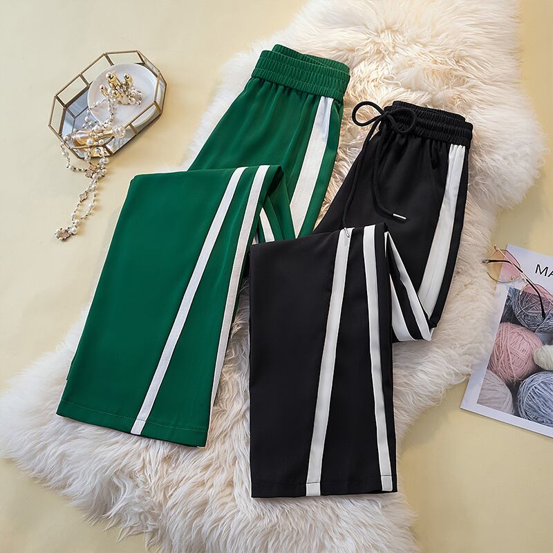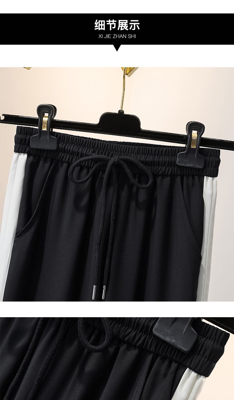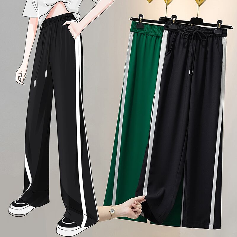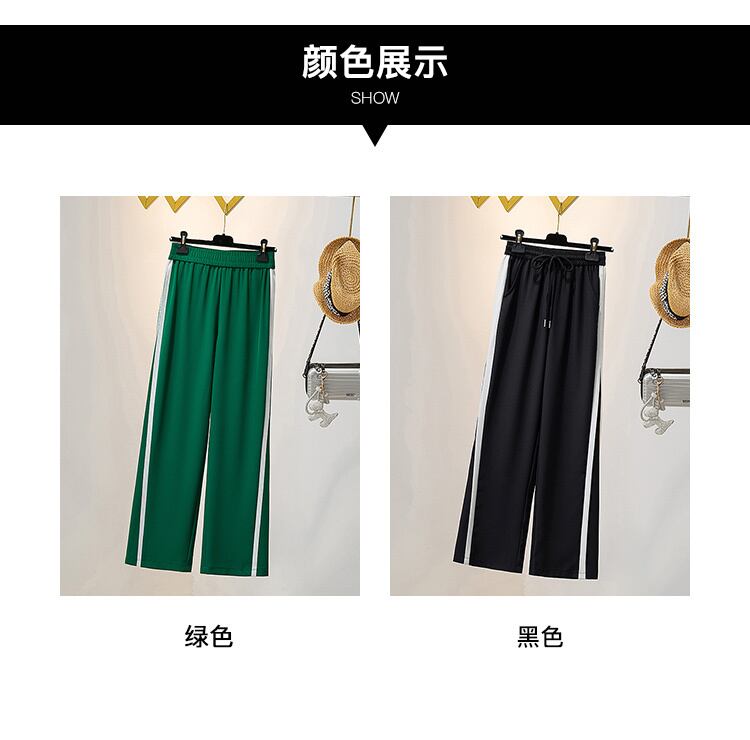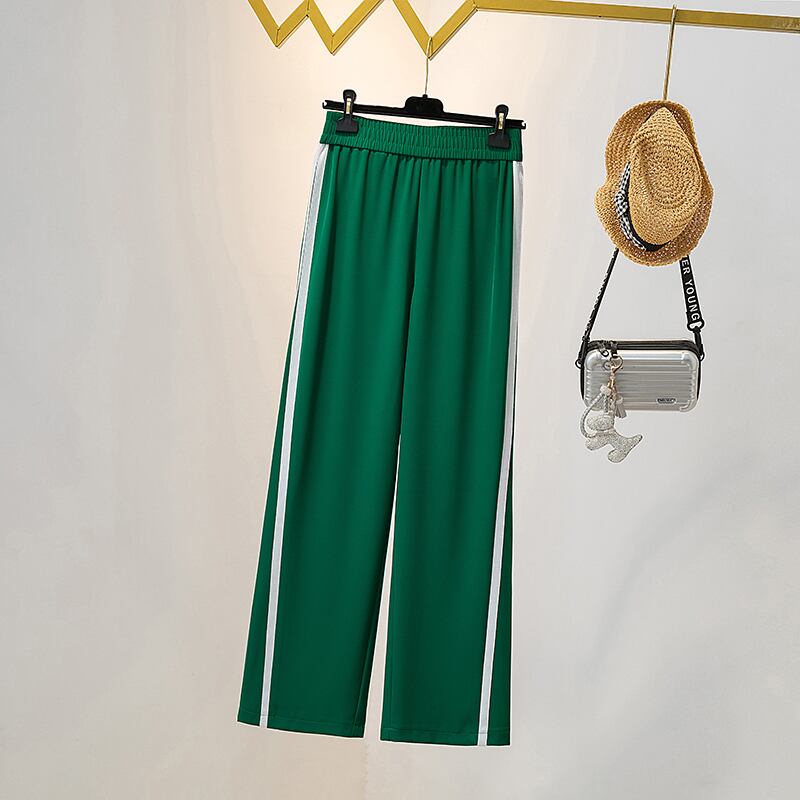 プラスサイズの婦人服 2023 春服脂肪姉妹新しいワイドレッグパンツストレートレッグパンツストライプハイウエストドレープモップパンツ女性 大きめサイズ スプリング 春物 8884168592176654