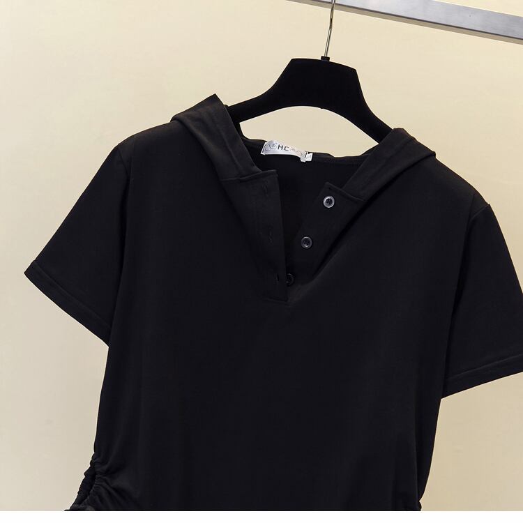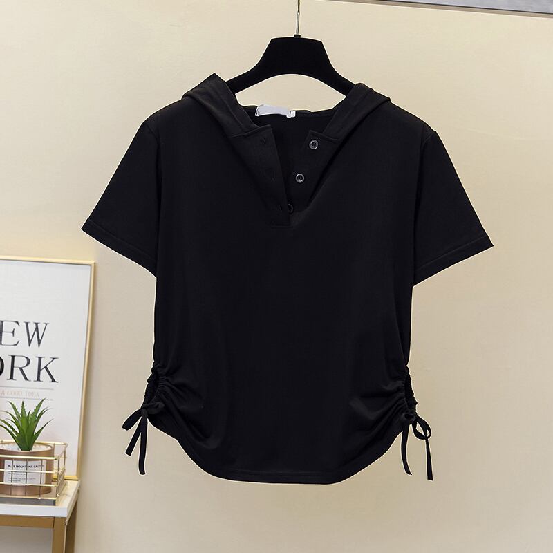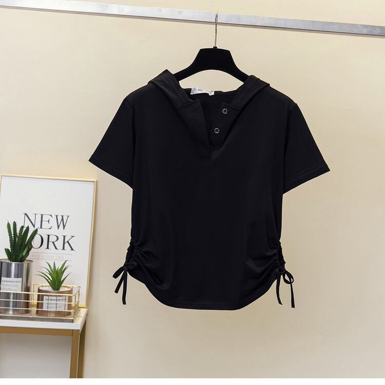 大きいサイズの婦人服 2023 夏服の新しいファット シスター デザイン バージョンの新しい不規則な巾着フード付きトップ 大きめサイズ サマー 夏物 8884119561608836