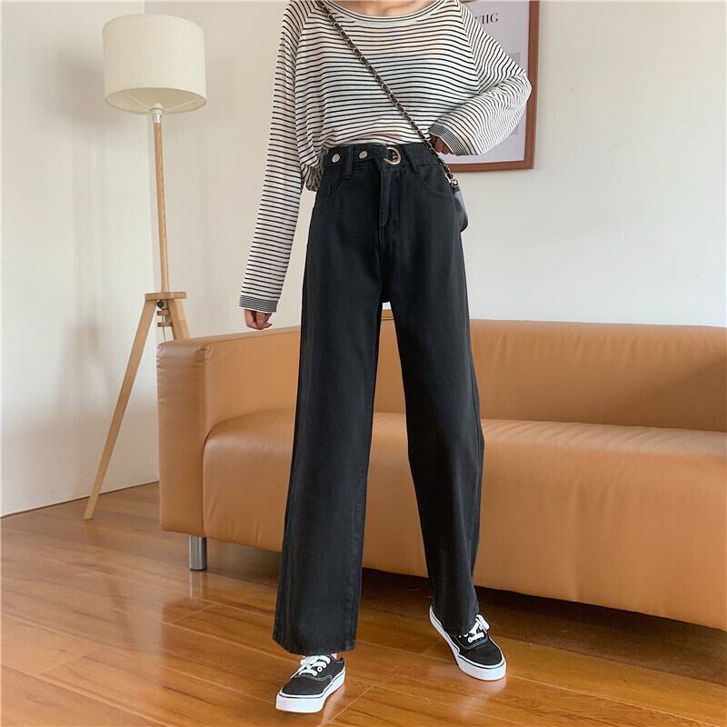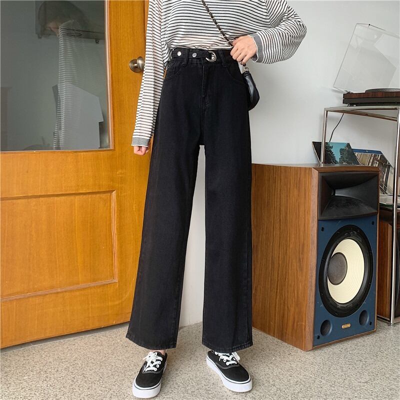 プラスサイズの婦人服 2023 トレンディな女性の春の新しいファットシスターハイウエスト 9 点ルーススリムストレートワイドレッグジーンズ女性 ハイウェスト 大きめサイズ スプリング 春物 ワイドパンツ 8884135344557517