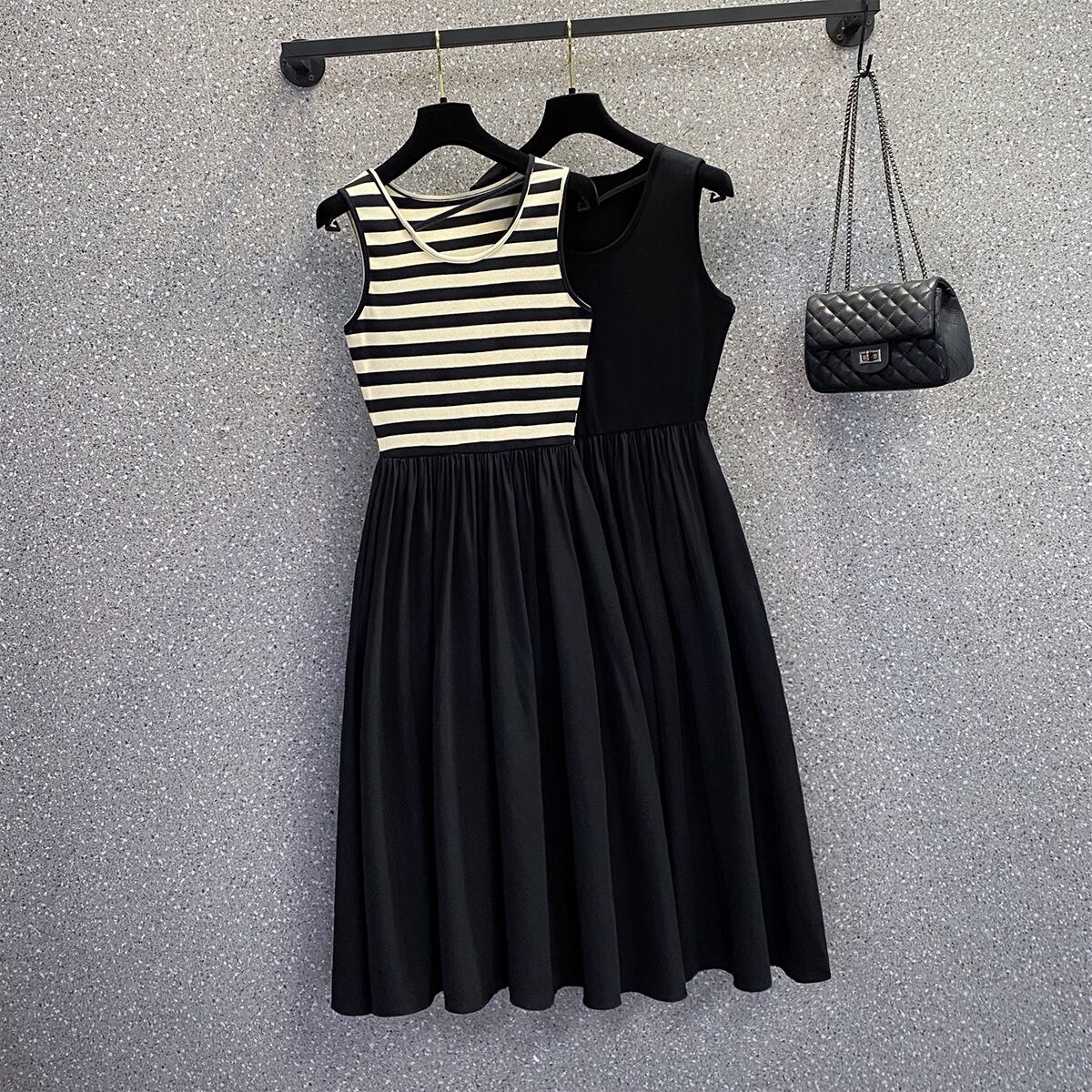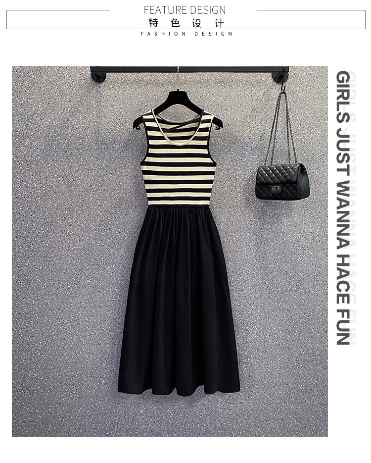 プラスサイズの婦人服 2023 夏新ファットシスターフレンチスタイルスリムウエストベストニットステッチドレス女性 大きめサイズ サマー 夏物 8884177017372933