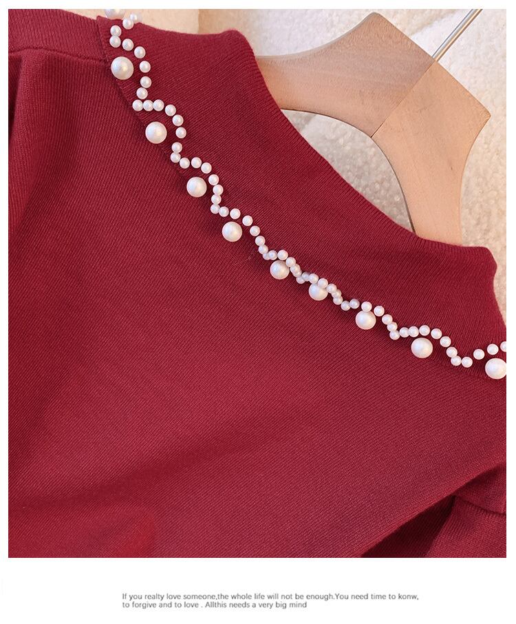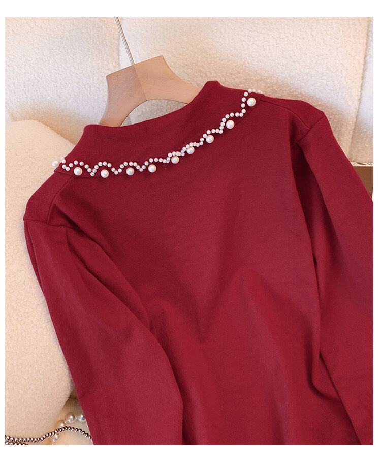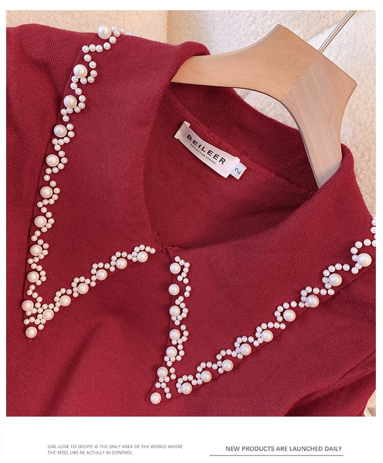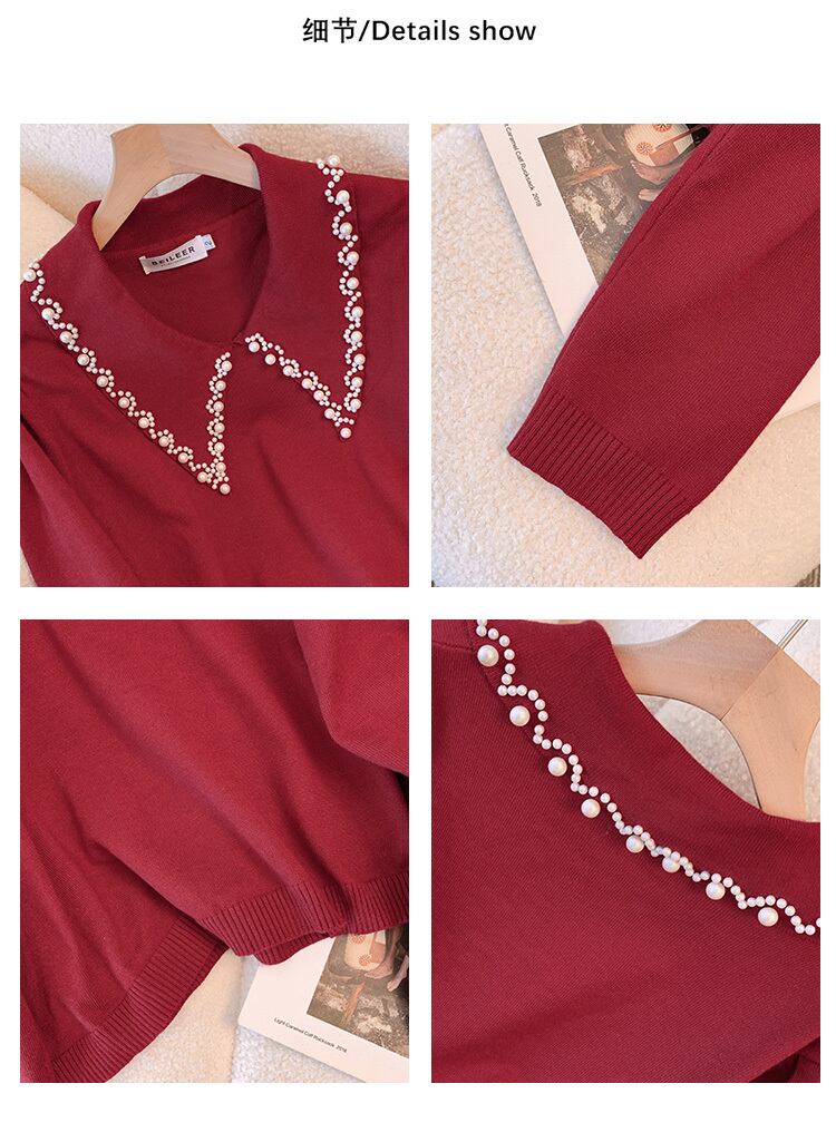 大きいサイズの婦人服 2023 春の新スタイル脂肪姉妹ファッション気質緩いスリムビーズニット長袖セーター女性 ロング 大きめサイズ スプリング 春物 8884172624111498