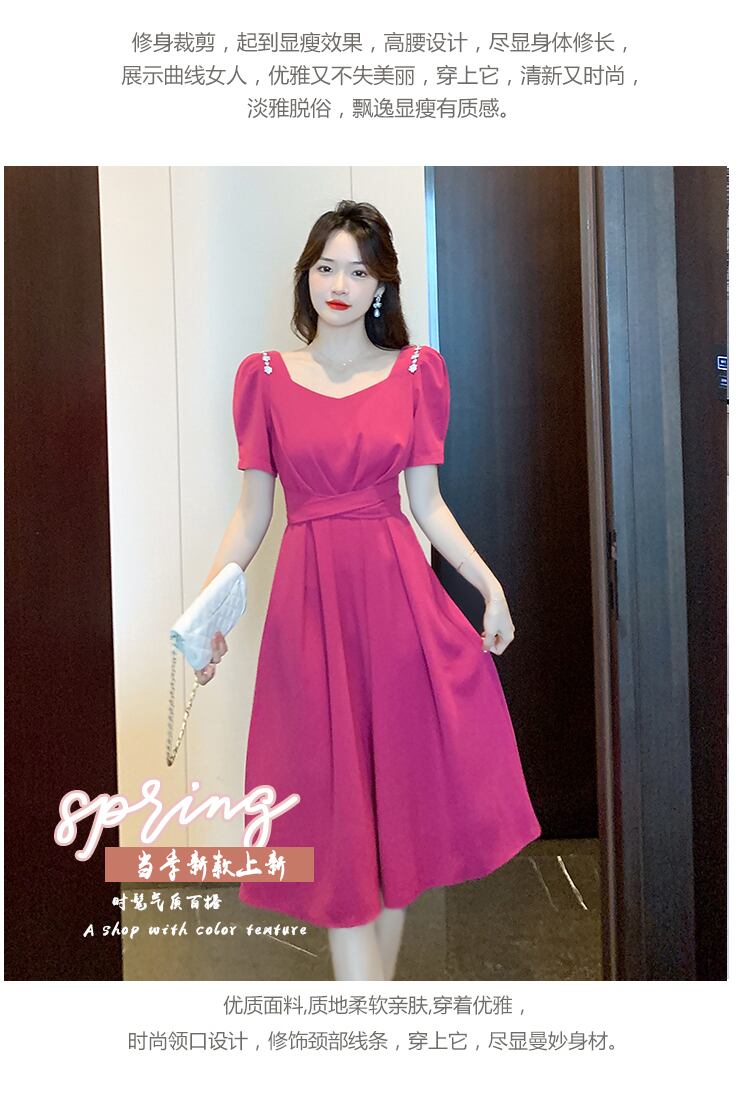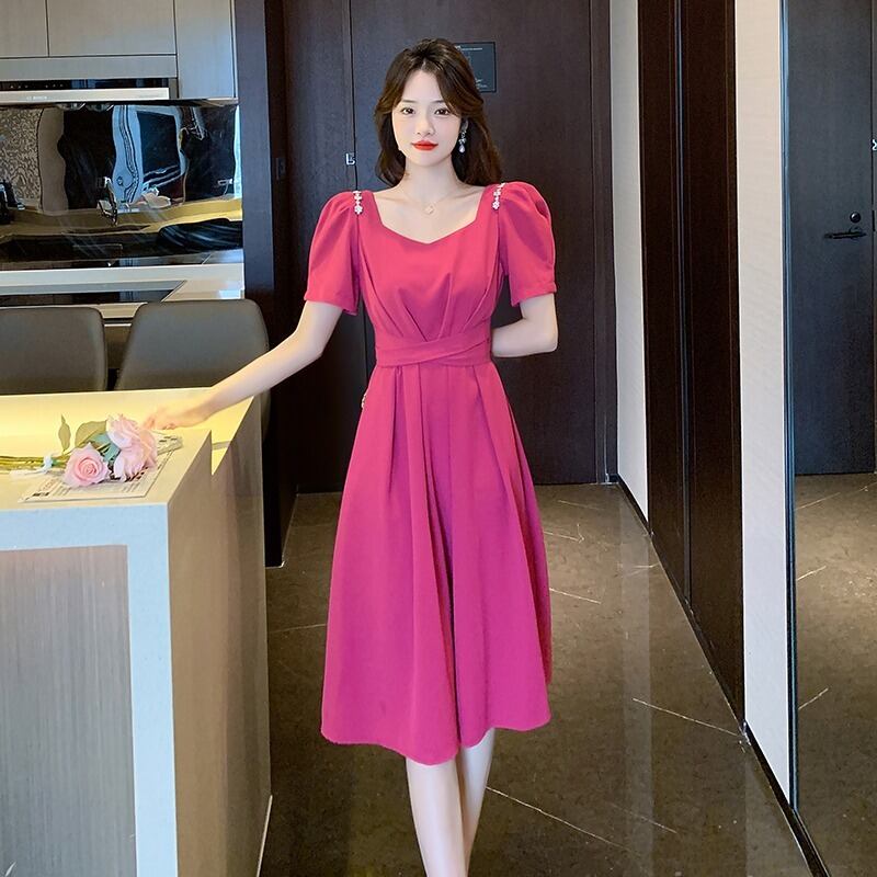 プラスサイズの婦人服 2023 トレンディな女性の夏の新しいファットシスターファッションスリムヘップバーンスタイルのハイウエスト気質オールマッチドレス ハイウェスト 大きめサイズ サマー 夏物 8884141319051992