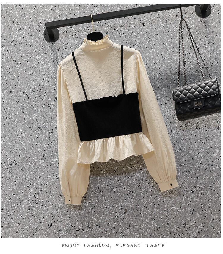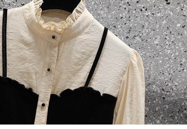 大きいサイズの婦人服 2023 トレンディな女性の春の新しいスタイルの太った姉妹の気質に見える薄い底入れの腰のウエストのすべての試合の偽のツーピースのシャツの女性 大きめサイズ スプリング 春物 8884128537068392