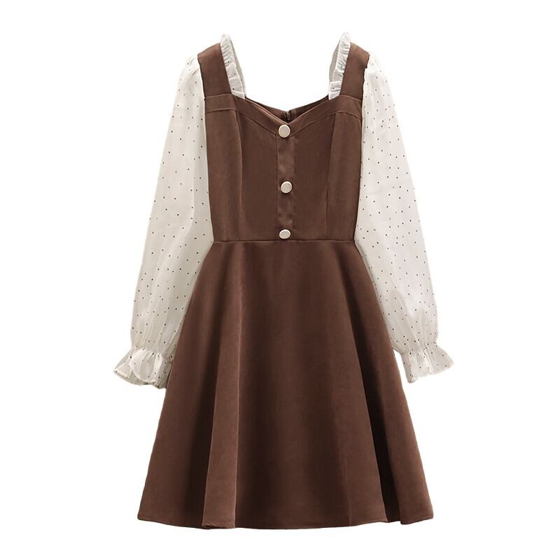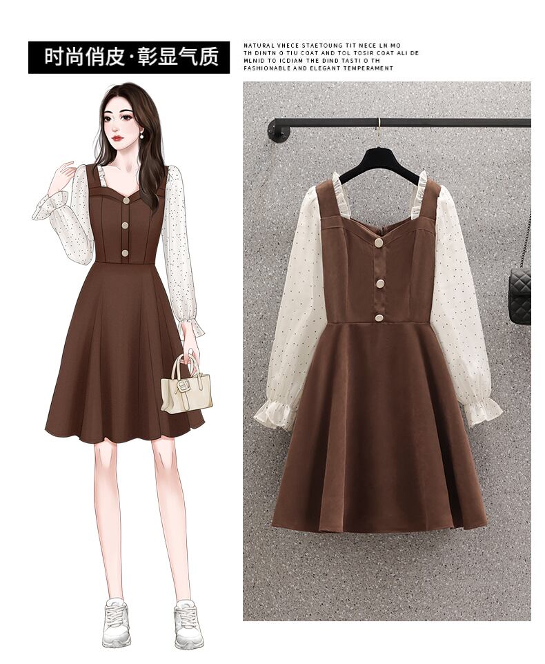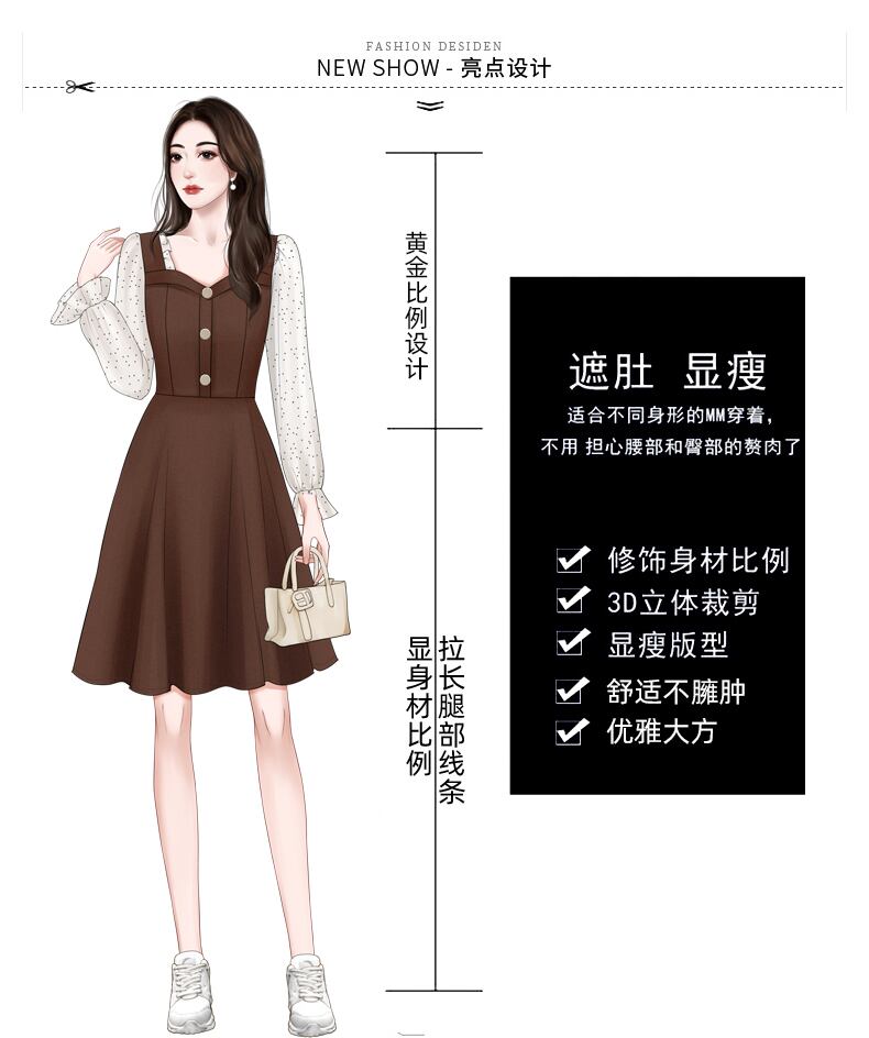 プラスサイズの婦人服 2023 春の新しい脂肪姉妹フレンチ気質のレトロなスプライシング偽ツーピースウエストドレス 大きめサイズ スプリング 春物 8884176962360134
