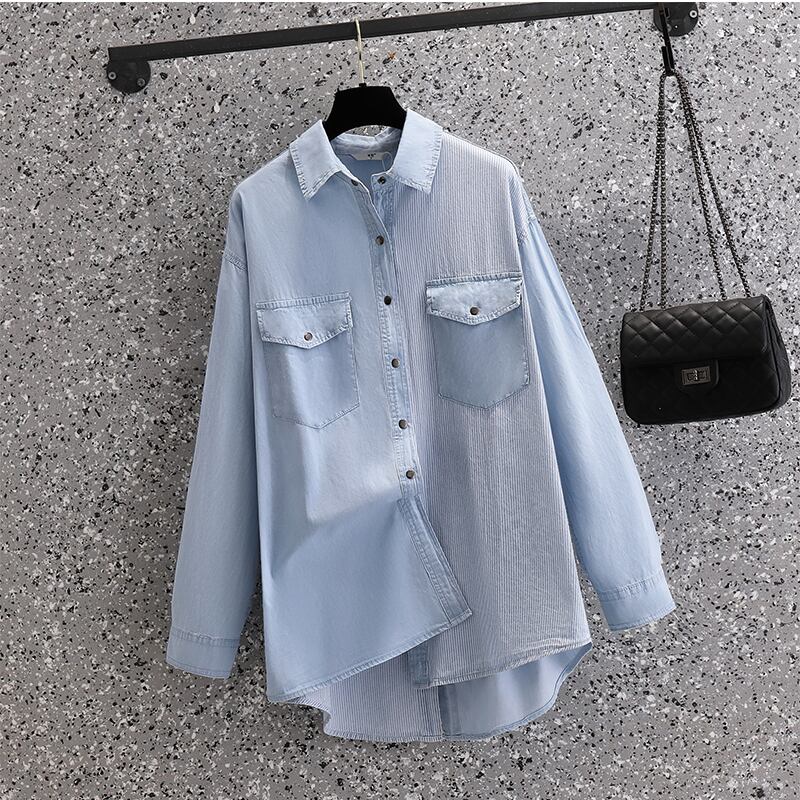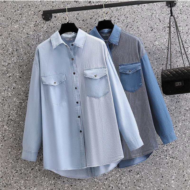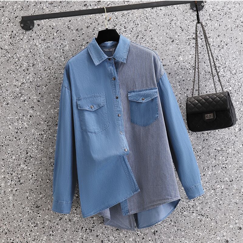 プラスサイズの婦人服 2023 春服ファットシスターズ新スタイル eign スタイル薄いスプライシングシャツトップスルーズカジュアルシャツ 大きめサイズ スプリング 春物 8884146381872889