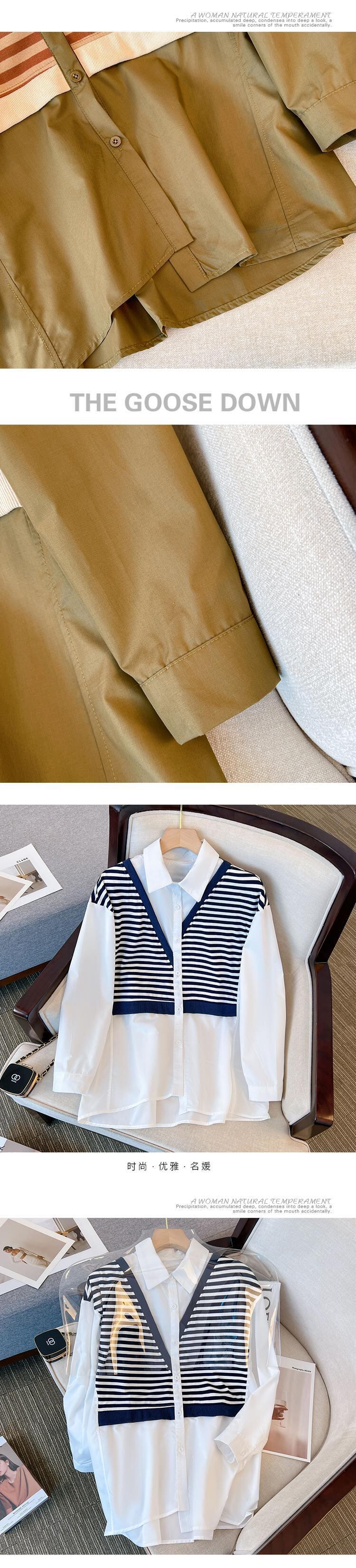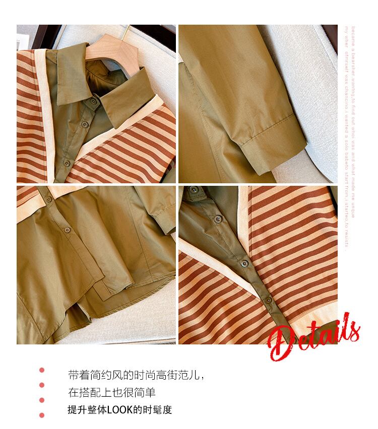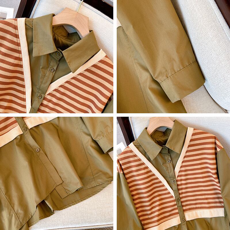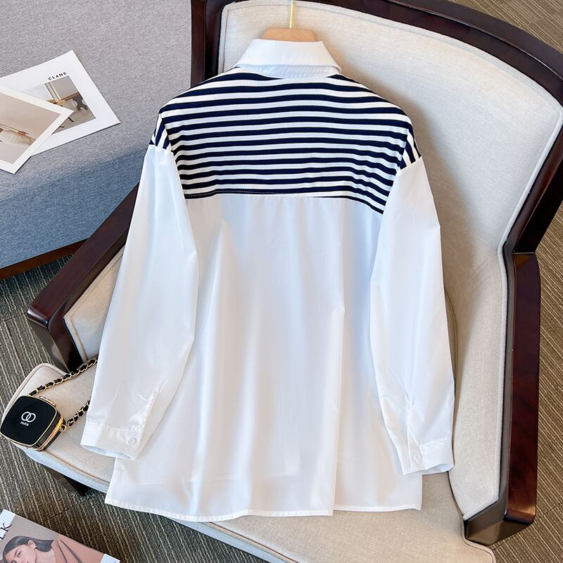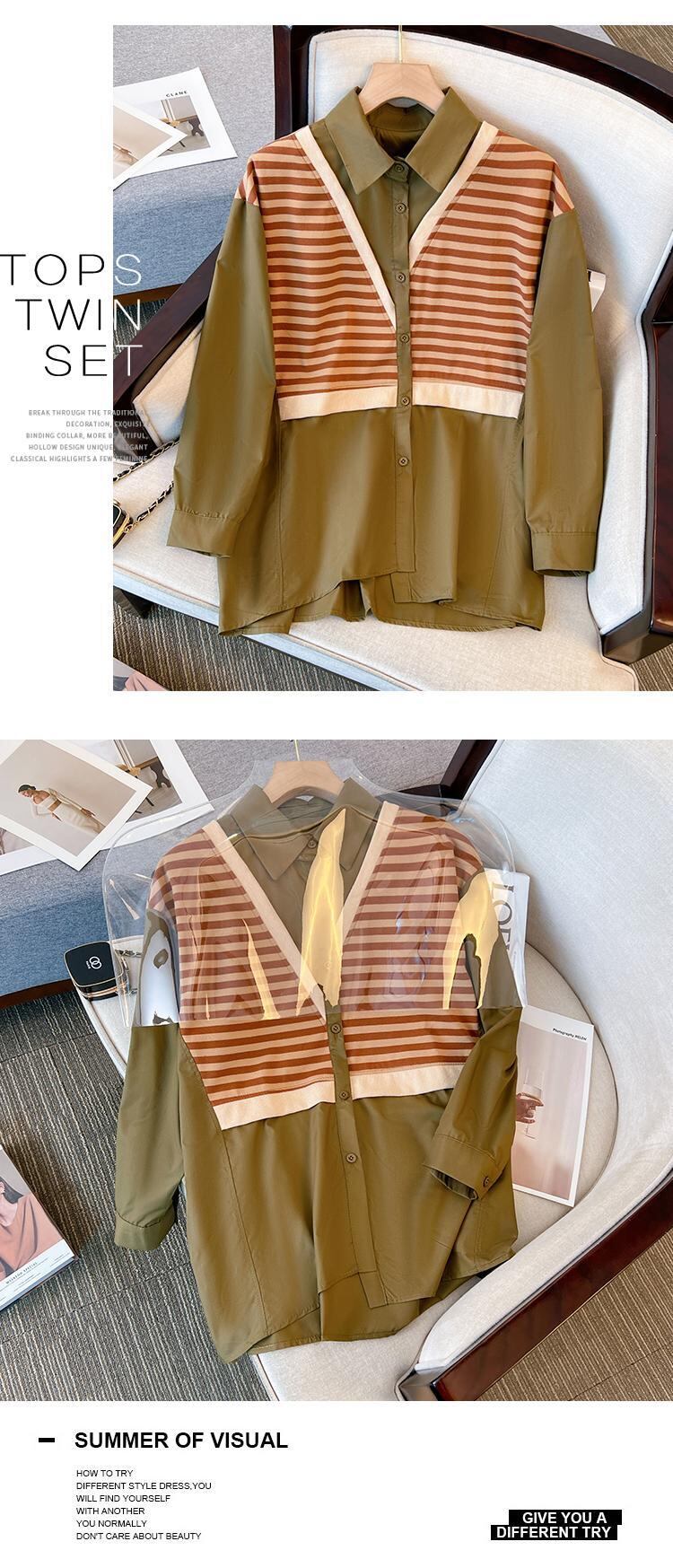プラスサイズの婦人服 2023 春服脂肪姉妹新しいスプライシング シャツ緩い腹カバー eign スタイル ファッションオールマッチ トップス 大きめサイズ スプリング 春物 8884191258640576