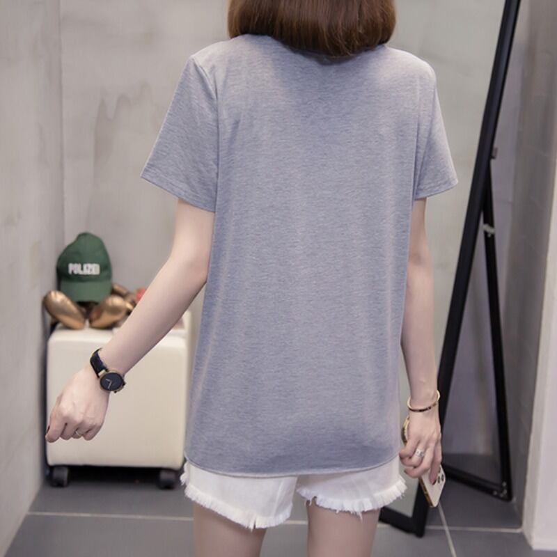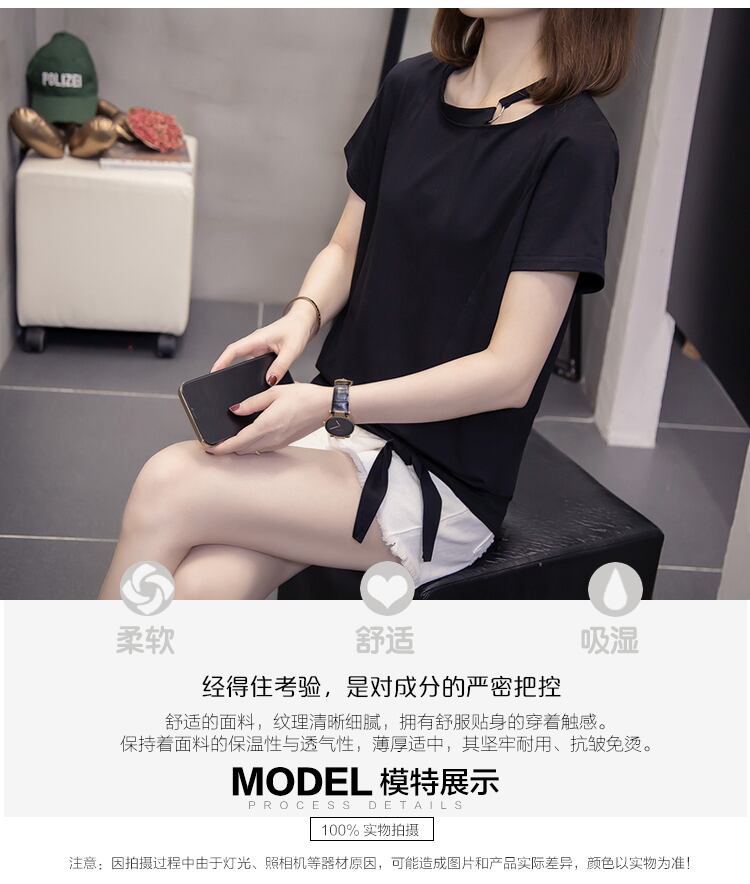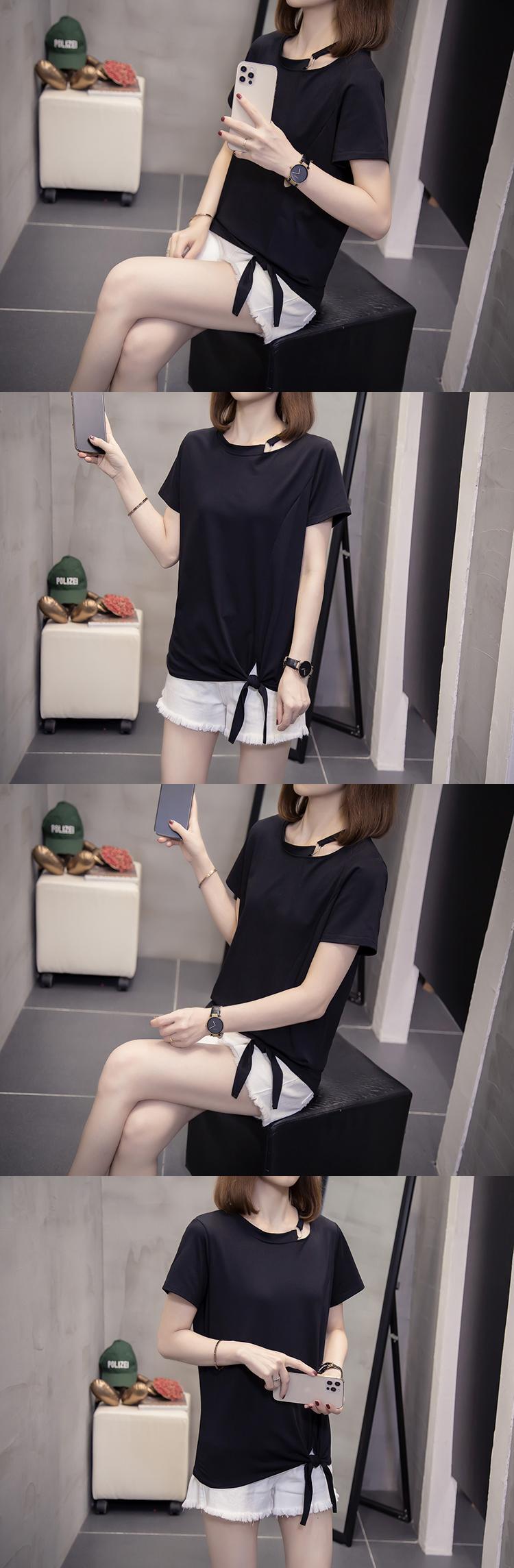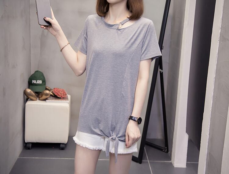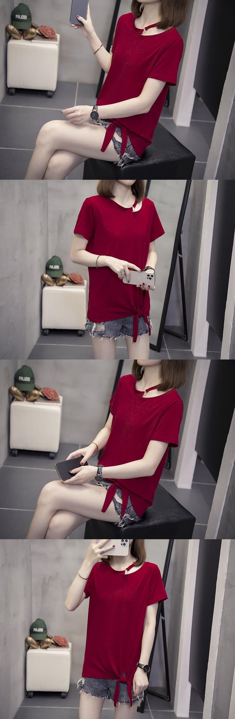 大きいサイズの婦人服 2023 夏新ファットシスター緩いネクタイ不規則な裾キンク腹カバー Tシャツ女性 大きめサイズ サマー 夏物 8884115227471814