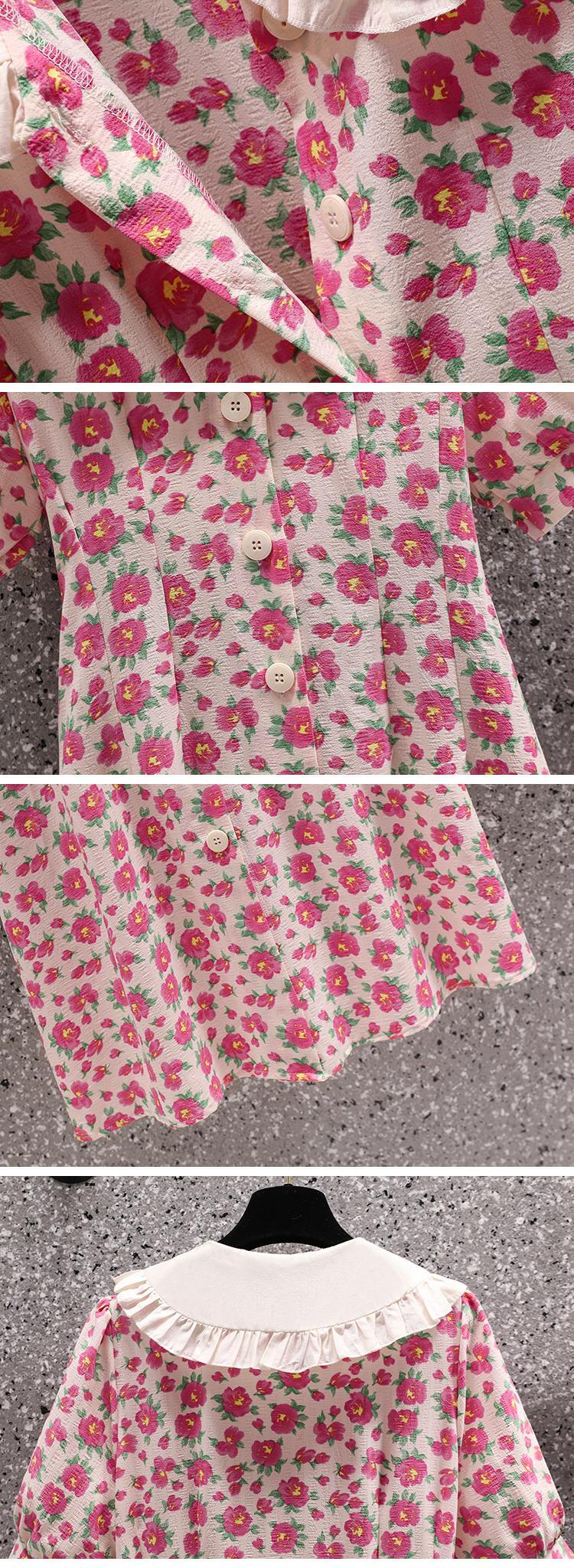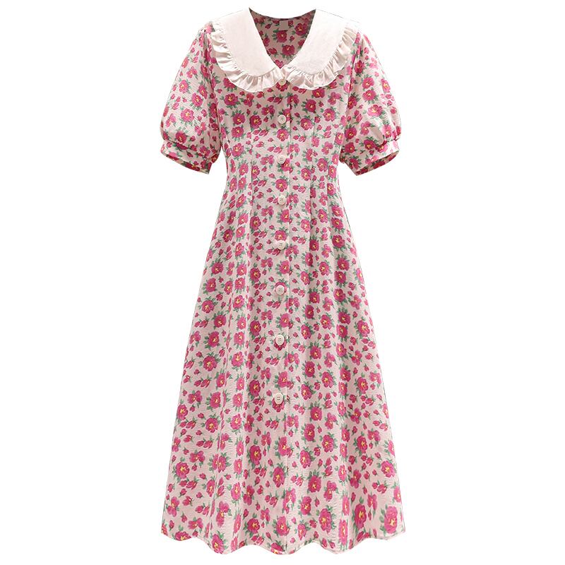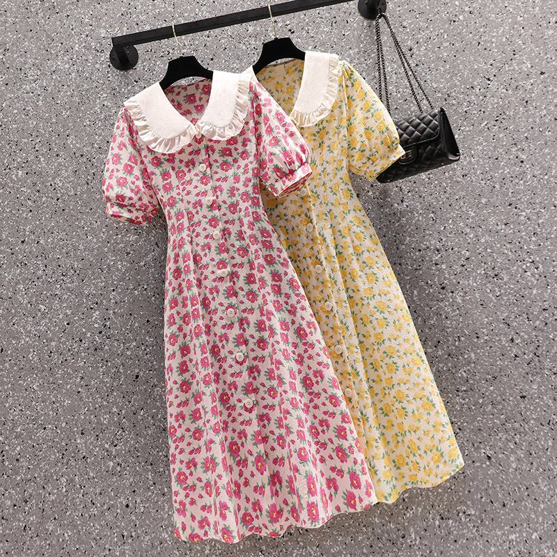 大きいサイズの婦人服 2023 夏服脂肪姉妹新しいスタイルの西洋スタイルのウエスト痩身ロングスカート人形の襟花柄のドレス 大きめサイズ サマー 夏物 8884156299324761