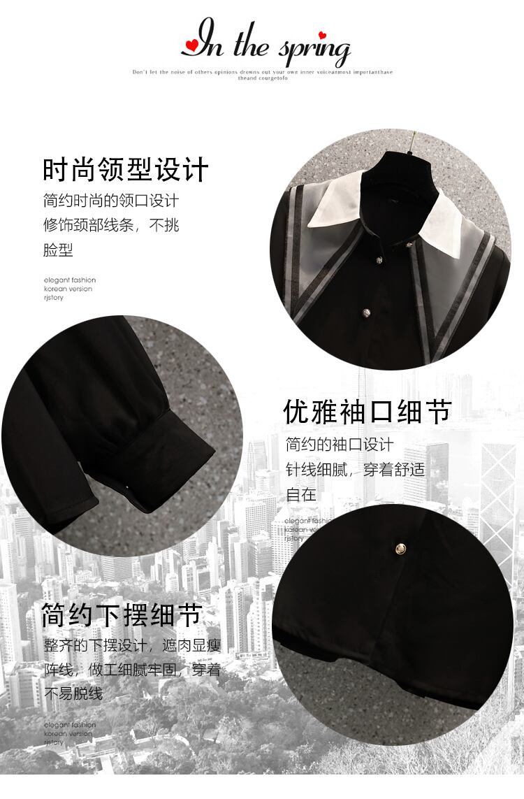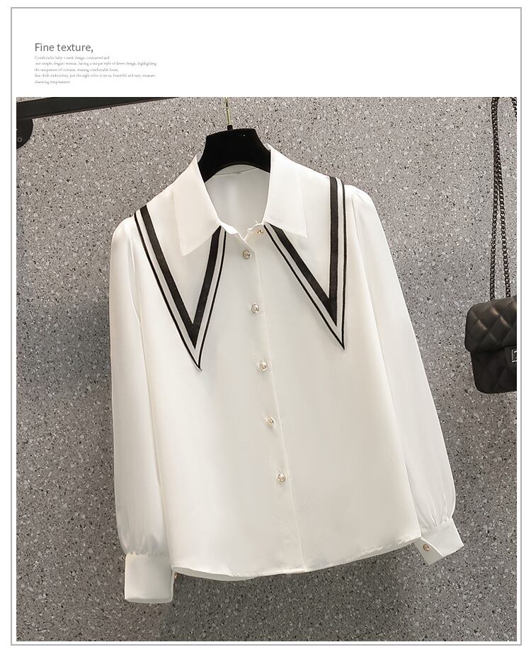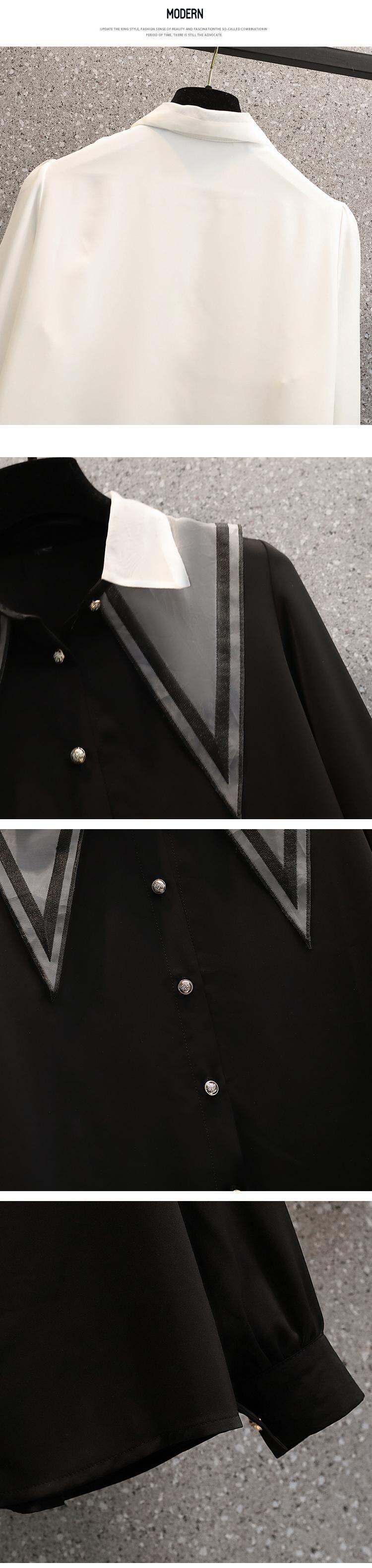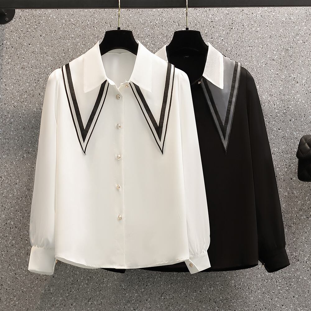 大きいサイズの婦人服 2023 春の新しいスタイルの太った姉妹の新しいスタイルは、細く見えるミディアム丈のデザイン感覚の長袖シャツ シャツの女性 ロング 大きめサイズ スプリング 春物 8884120495957585