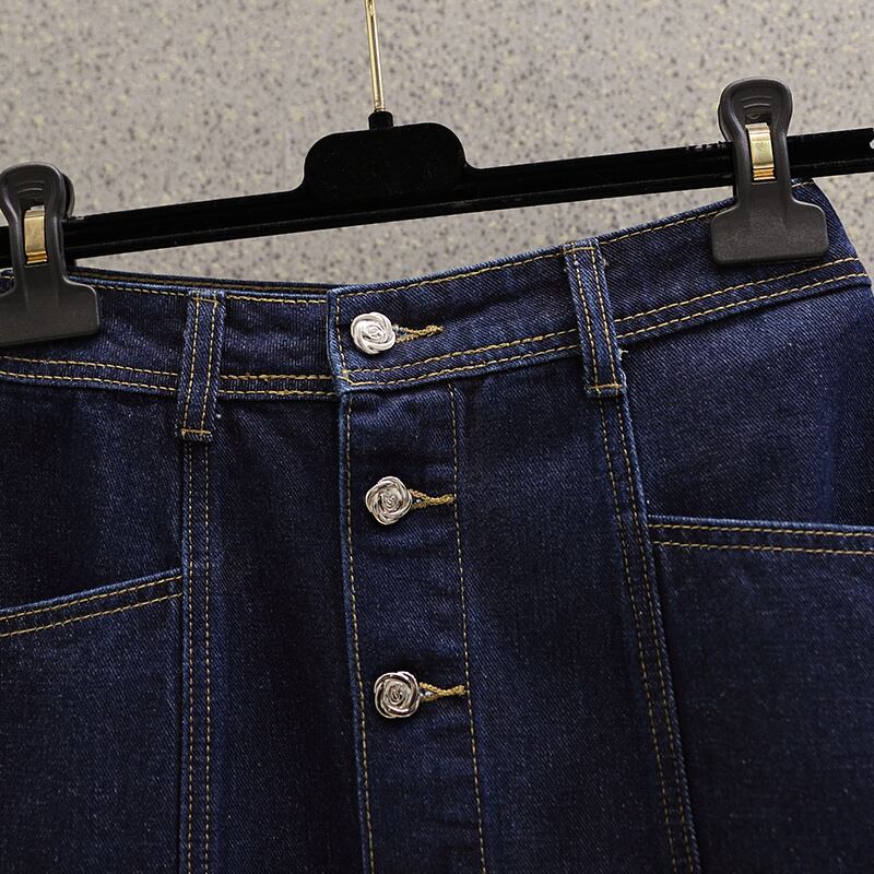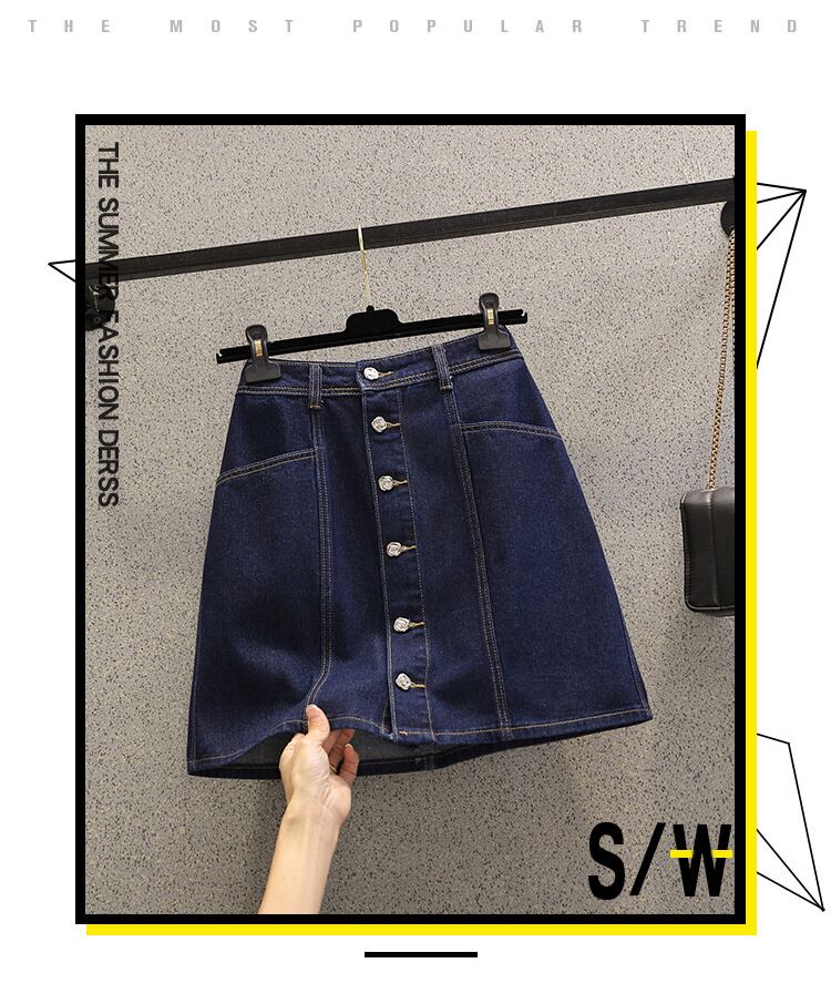 プラスサイズの婦人服 2023 ファットシスター夏の新しいハイウエスト薄い A ラインスカートオールマッチスリムデニムスカート女性 ハイウェスト 大きめサイズ サマー 夏物 Aライン 888419653911027
