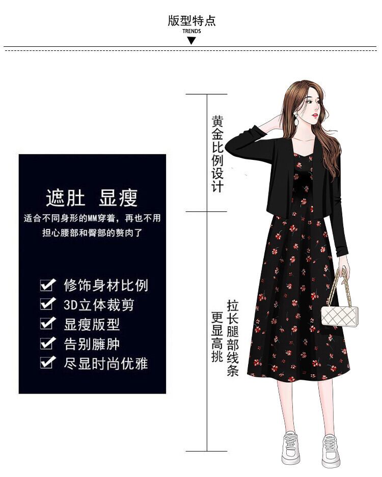 大きいサイズの婦人服 2023 ファット シスター 春の新作 フレンチ フローラル サスペンダー ドレス 軽くて馴染みのあるスタイル 薄いツーピース セット 大きめサイズ スプリング 春物 花柄 8884161681914448