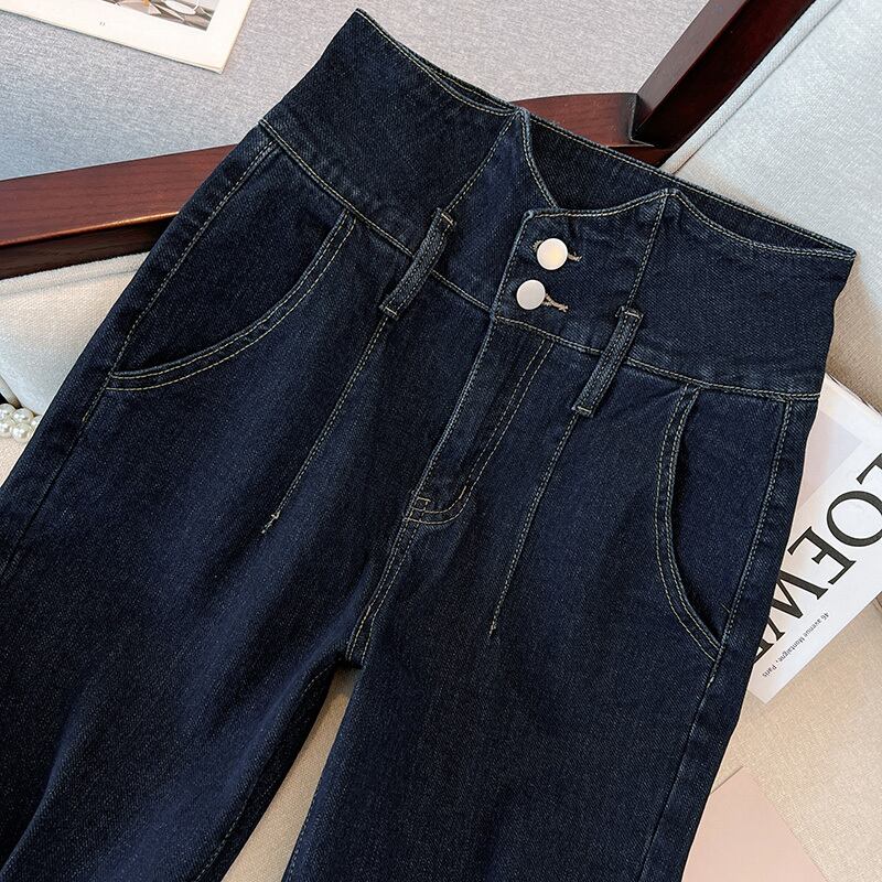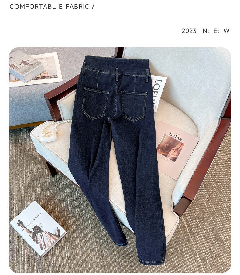 プラスサイズの婦人服 2023 春の新しいスタイルのファットシスターカジュアルルーズな年齢を減らす気質の純粋な色のデザインのデニムパンツ 大きめサイズ スプリング 春物 ピュア 8884136180300848