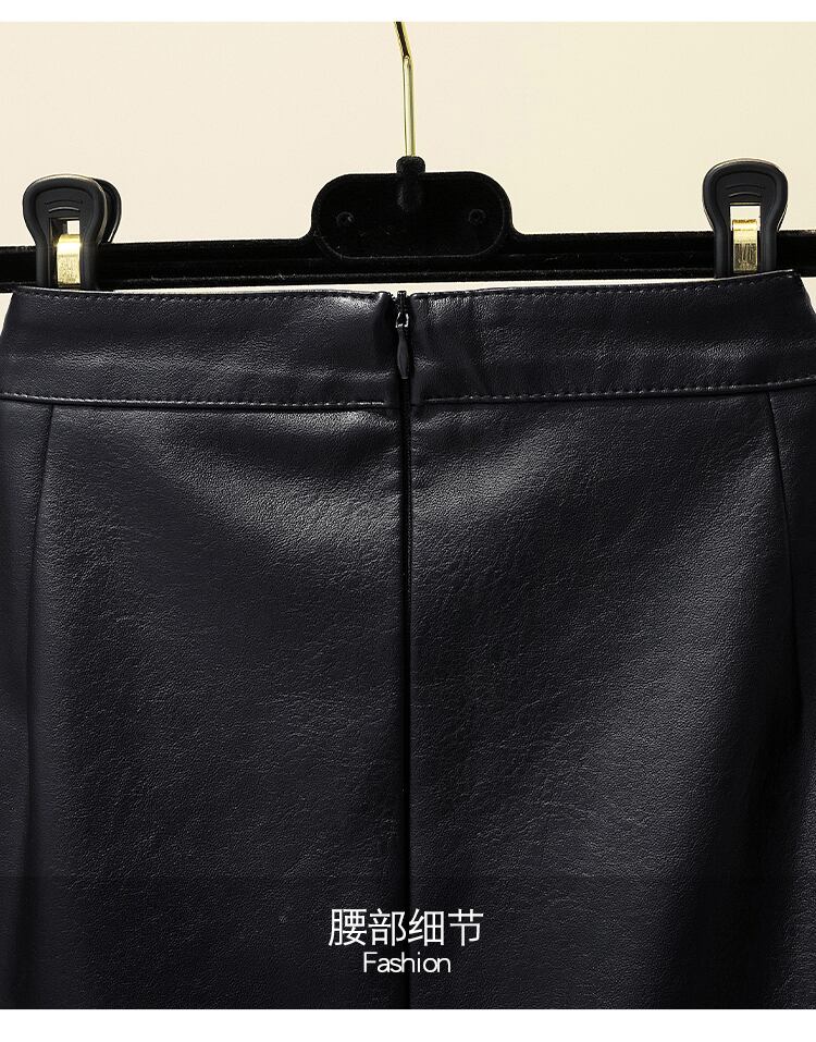 プラスサイズの婦人服 2023 ファットシスター春の新ウォッシュウォーターレザーハイウエストバッグヒップスカート pu レザー単語スカート女性 ハイウェスト 大きめサイズ スプリング 春物 8884153563100806