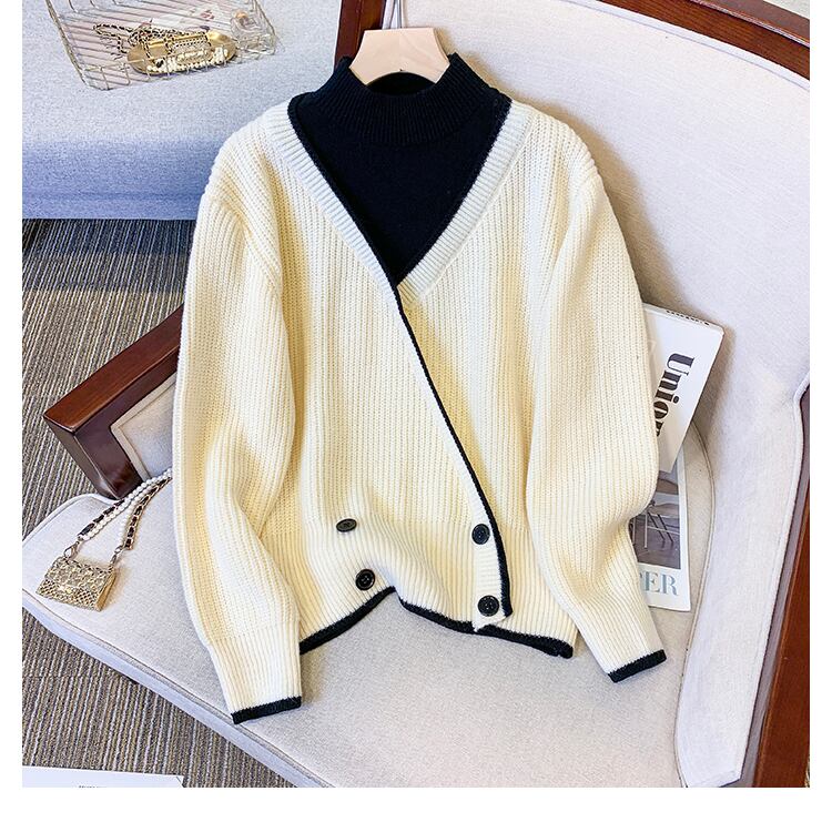 プラスサイズの婦人服2023ファットシスター春の新しいeignスタイルの薄いフェイクツーピースのコントラストカラーデザインのプルオーバーセーター 大きめサイズ スプリング 春物 888412804458827