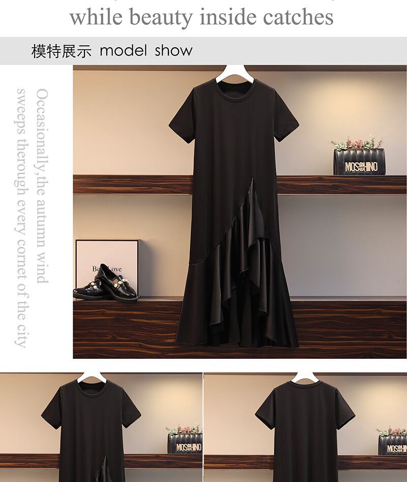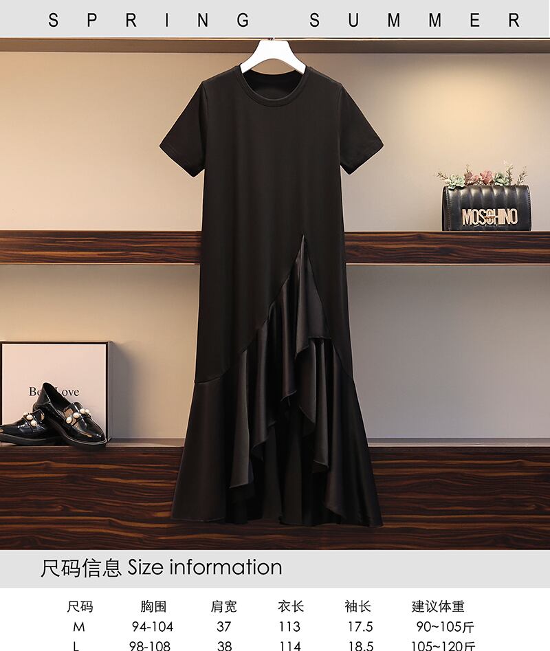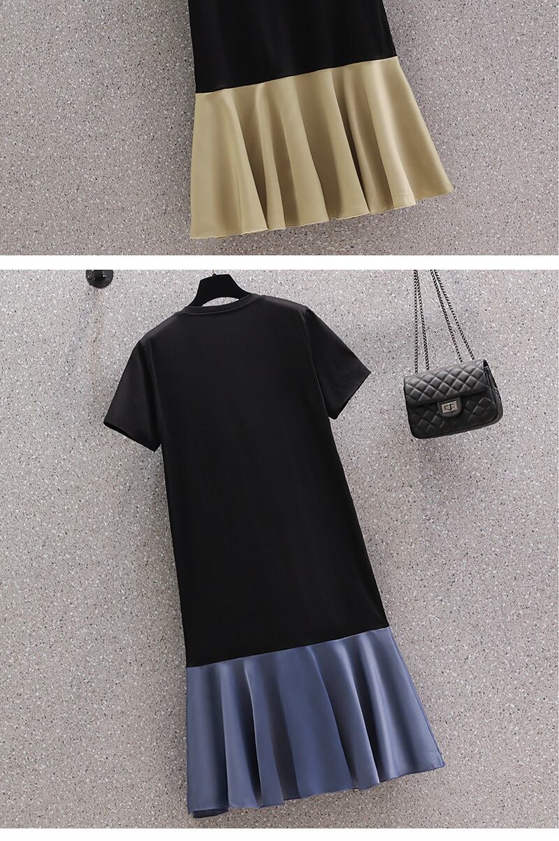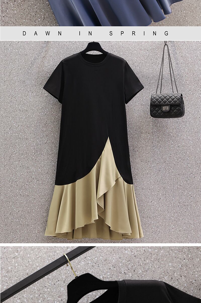 大きいサイズの婦人服 2023 夏の新しい太った姉妹デザイン センス気質不規則なスプライシング偽のツーピース ドレス 大きめサイズ サマー 夏物 888411317122961