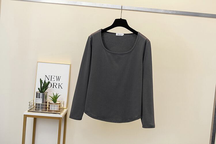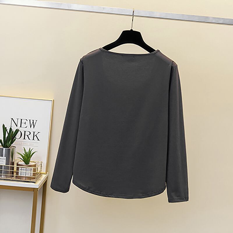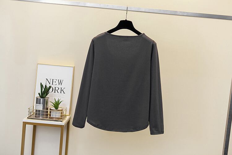 プラスサイズの婦人服 2023 ファットシスター春の新ファッション U ネックシンプルなゆったり底入れシャツ長袖 Tシャツトップ女性 ロング 大きめサイズ スプリング 春物 8884116926697444